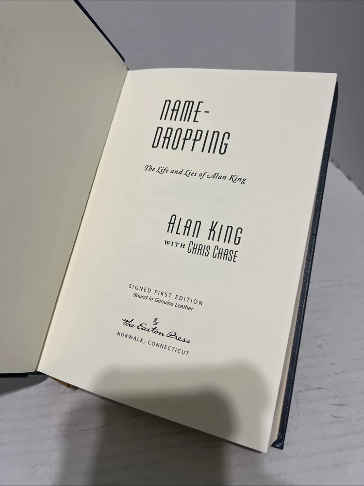 Dive into the world of show business with "Name Dropping" by Alan King, a captivating exploration of the entertainment industry as seen through the eyes of a seasoned performer. This Easton Press edition is a must-have for enthusiasts of biographies and true stories, offering a first edition hardcover that's as robust as it is beautiful, with a leather-bound cover that exudes quality. Perfect for collectors and fans alike, this signed edition not only enhances your library but also serves as a tribute to the richness of television and performing arts history. The book's narrative is delivered in its original English language, ensuring an authentic reading experience for adults who appreciate the nuances of a well-lived career in the spotlight.