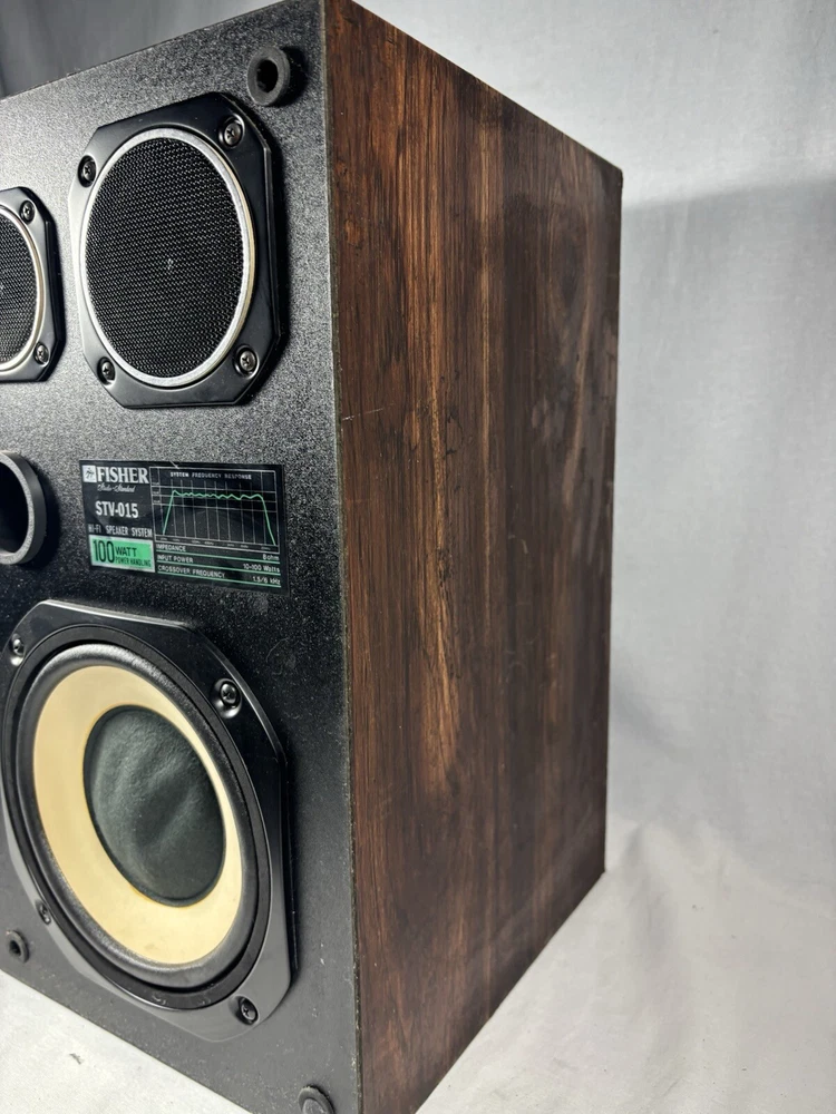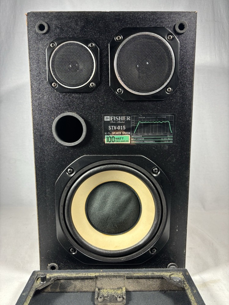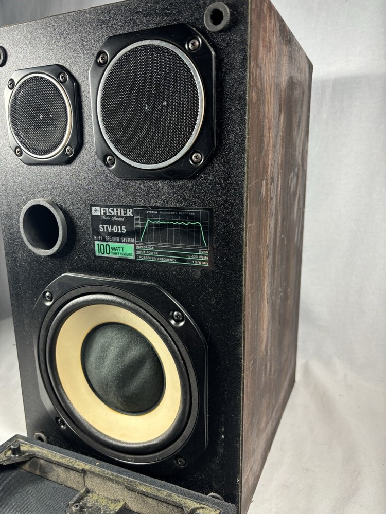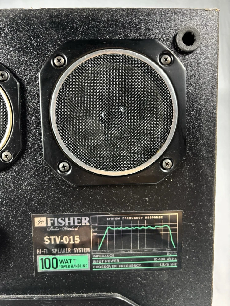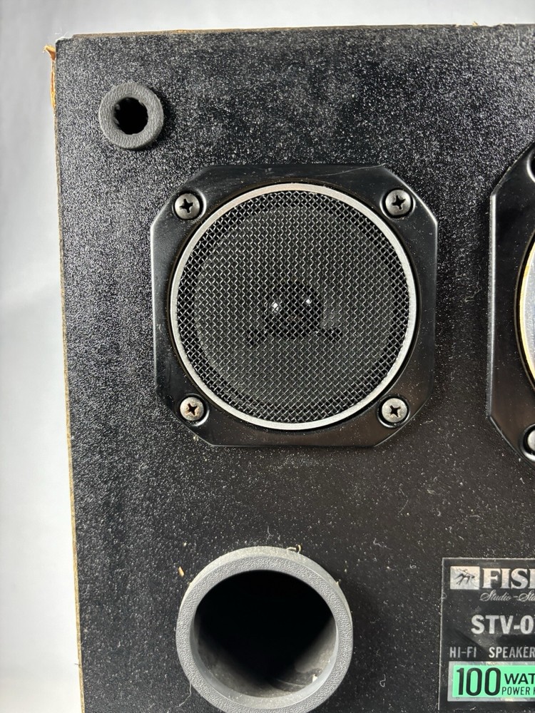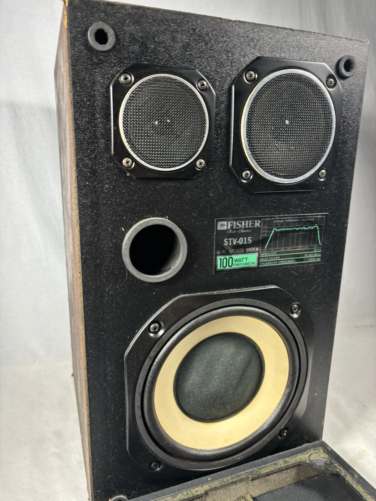 *Needs Tweeter* Fisher STV-015 Vintage HiFi Passive Speaker 8 Ohms 100W Tested Tested. The top tweeter doesn’t work. Checked the wiring and I think it just needs replaced. Woofer and mid driver sound great! Comes with grille (one peg is broke in hole - could be fixed with pliers and glue) Rare vintage speaker