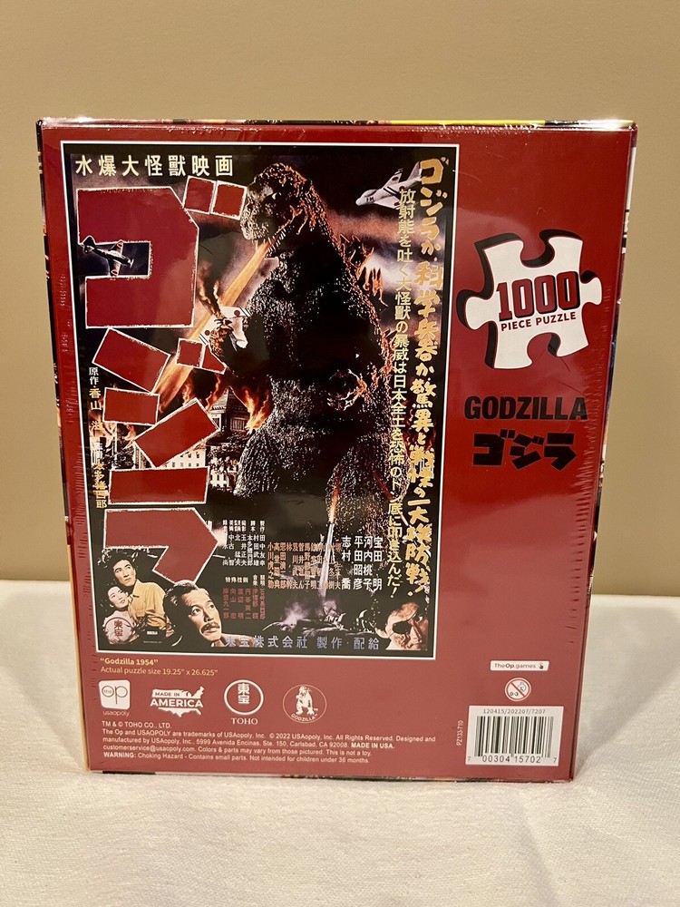 This is the exciting Godzilla 1954 Jigsaw Puzzle from OP Puzzles! With 1000 pieces, this puzzle is sure to bring hours of fun to any puzzle enthusiast, especially to any Godzilla fan! The puzzle is brand new and factory sealed. And this will be shipped using USPS Priority Mail.