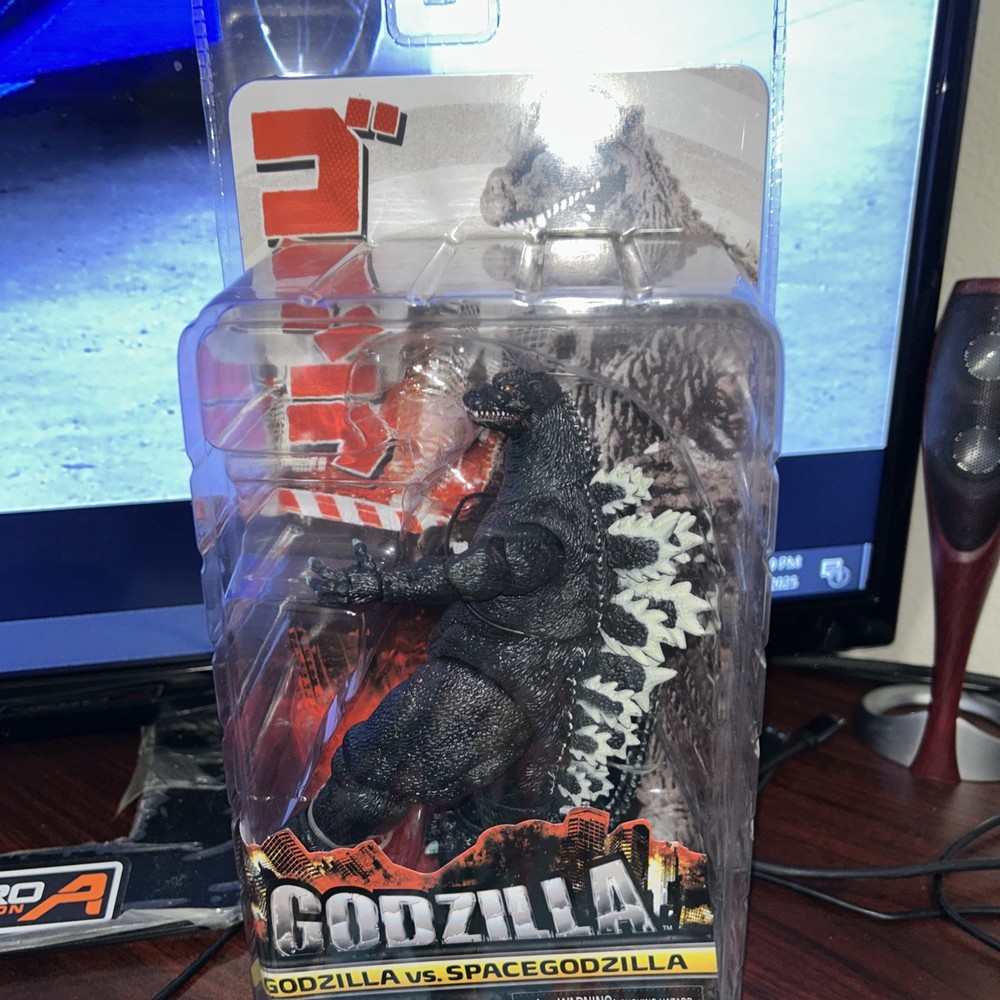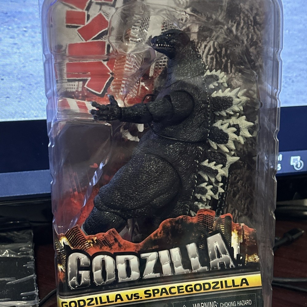 Up for sale is a brand new NECA Godzilla Classic Series action figure, featuring the iconic monster in his classic design from the movie "Godzilla vs. SpacGodzilla". This highly collectible item is made of durable plastic and stands at approximately 9 inches tall. The figure comes with custom features and is part of the Video Games theme. It was manufactured in 1994 and is part of the 2002-Now time period. The age level for this action figure is 14-15 years. This item is perfect for any fan of the Godzilla franchise and would make a great addition to any collection.