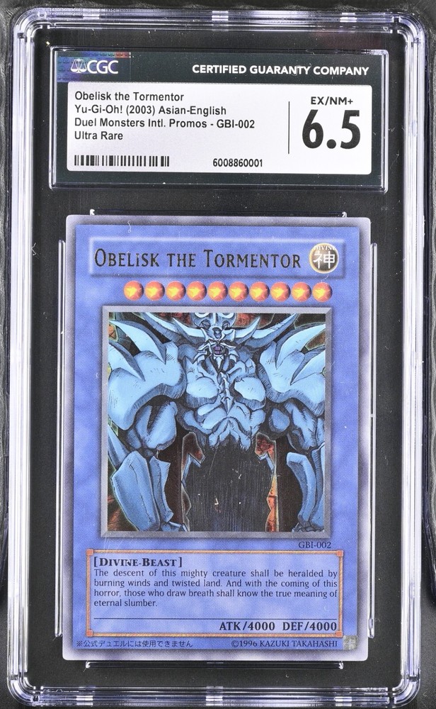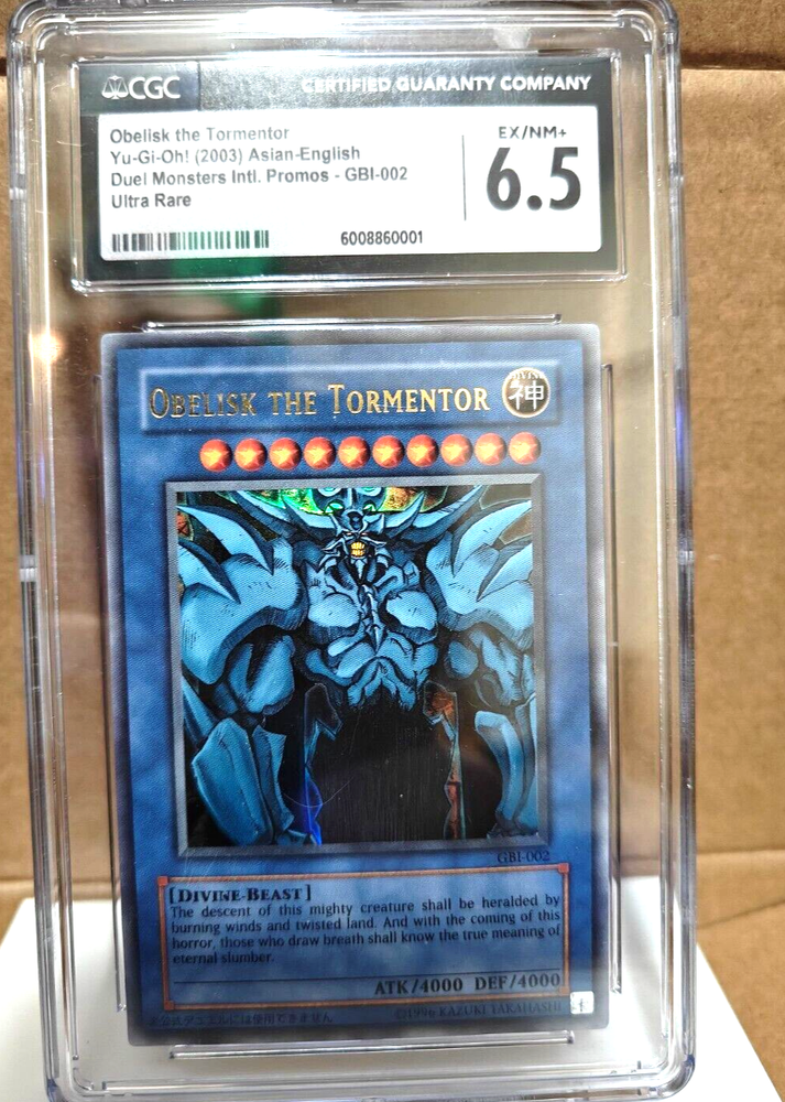 Free eBay listing template designed by dewiso.com Obelisk The Tormentor (GBI-002) - Ultra Rare - CGC Graded 6.5 This card is graded by CGC - 6.5 Type: Yu-Gi-Oh! Duel Monsters International The card is highly sought after and is extremely difficult to find - Holographic The card is Ultra Rare Series Print: 2003 Shipping and Additional Details Item will be shipped via USPS with security sealed box. Shipping is free. Please allow up to 5 days for handling prior to shipment. Tracking will be provided as standard. USPS Priority Mail Service. No Returns Accepted For eBay Orders: If you are interested in the ability to make returns, please visit our store link in the image above and reach out to us. 14-Day returns are allowed on new items through our store (5-Days for pre-owned items).