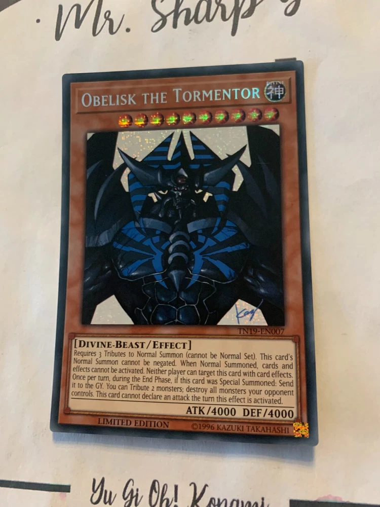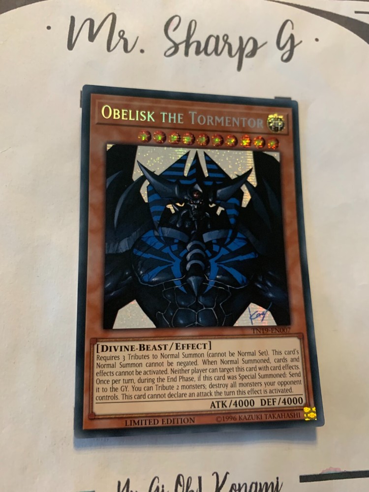 - Mr. Sharp G - - Online Store - TRADING CARDS-TCG-COLLECTION-SETS-TOURNAMENT-Yu Gi Oh! Konami * * * OBELISK THE TORMENTOR - LIMITIERTE AUFLAGE TN19-EN007 - Bitte schauen Sie sich die beigefügten Bilder an, um einen vollständigen Überblick über den Zustand jedes Artikels zu erhalten. - Zustand des Artikels: Neu* - in einem neuwertigem Zustand. (* Neuer Zustand - kann aber leichte Mängel wie 'whitening', leichte Eindrücke, Dellen u.a. haben - die von der Herstellung der Karte aus Produktion stammen, bitte den Bildern und in der Beschreibung den Zustand entgegennehmen) - Typ/ Serie: DIVINE-BEAST/ EFFECT / LIMITED EDITION TN19-EN007 - Seltenheitsstufe/ Rarity: SECRET RARE - Edition : 2019 GOLD SARCOPHAGUS TIN * * * + Kartenschutzhülle & Toploader inklusiver im Preis + mehrfache Bestellung = einmalige Versandkosten + versicherter Versand Bestellung in Höhe - v. 8,50EUR in Deutschland/ Inland - v. 12,50EUR im Ausland/ International + Großbestellungen kostenloser Versand Inland und International - Bei Fragen, Details, nicht im Bestand gewünschte Karten/ Artikel oder Versandgutschriften schreiben Sie uns! Wir freuen uns auf Ihre Nachricht! - Vielen Dank für Ihr Vertrauen, Unterstützung und Besuch in unserem Store ! - Ihr Mr. Sharp G Team