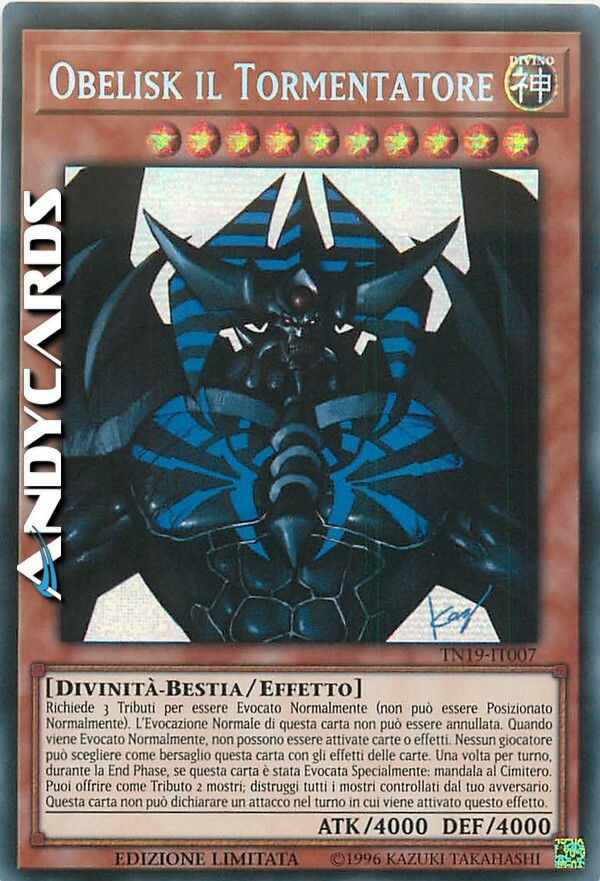 Obelisk The Tormentor Secret Prismatic TN19 IT007 Rare YuGiOh Card