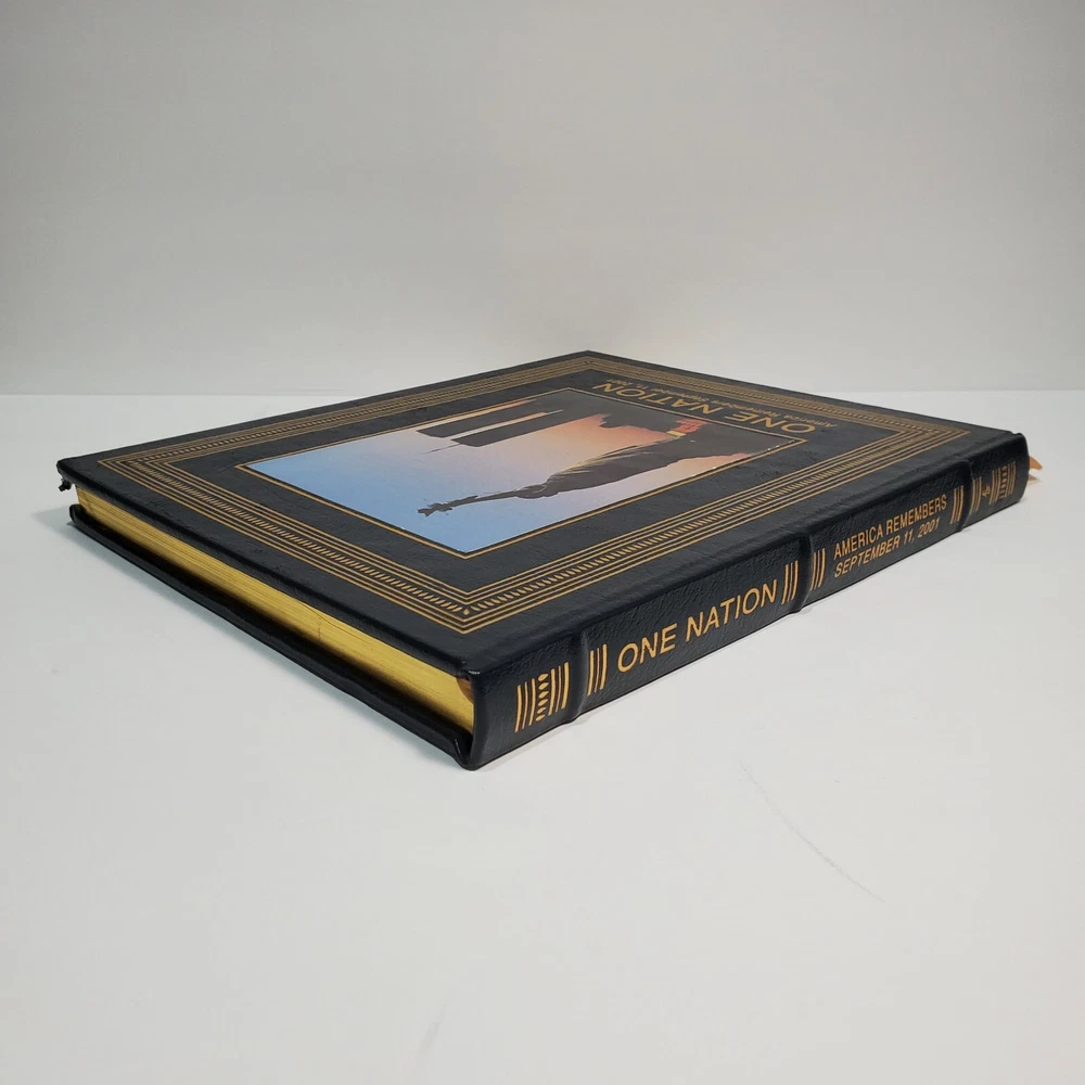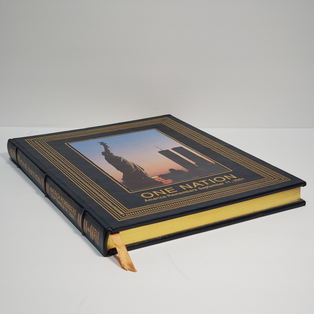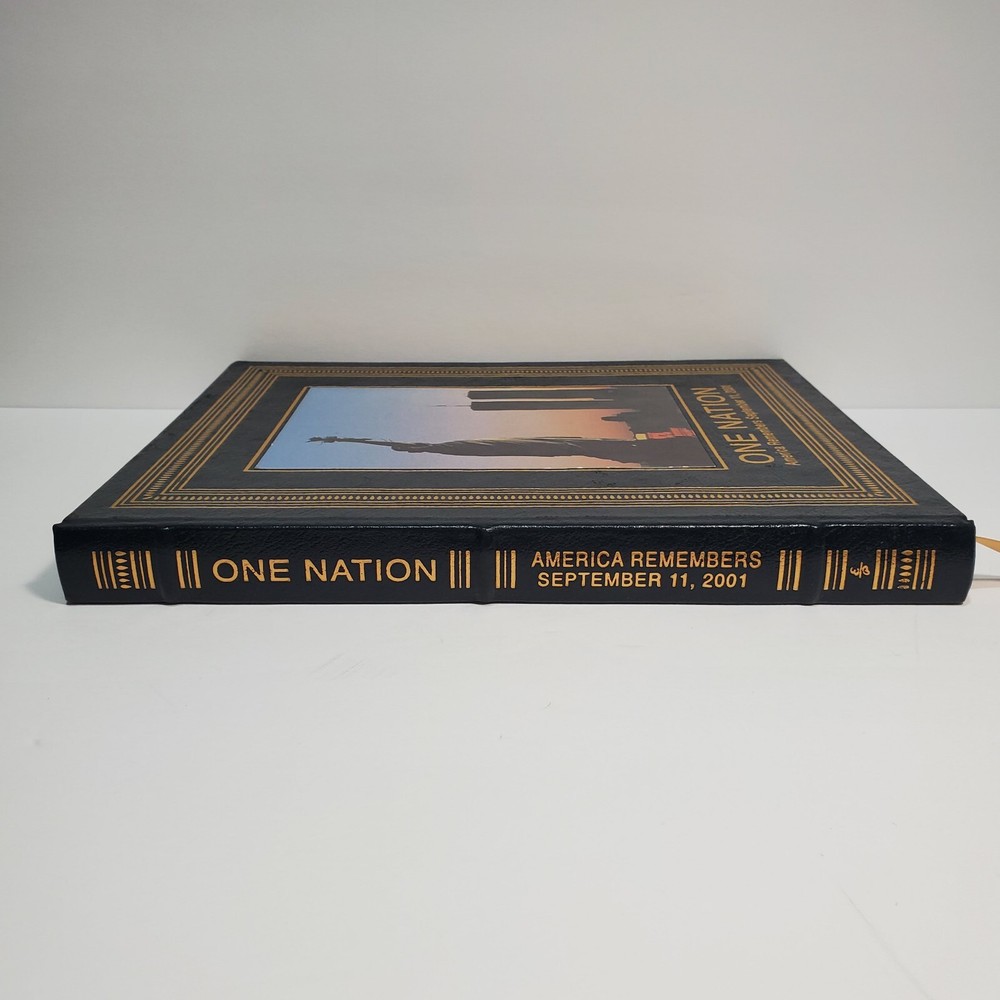 ONE NATION AMERICA REMEMBERS SEPTEMBER 11, 2001 Easton Press Leather 1st Edition. Pre-owned in good condition, on one of the top corner the leather have I small rip is a little damaged the rest of the book is in great condition. Please see all pictures for more details and condition and contact me if you have any questions Thank you.