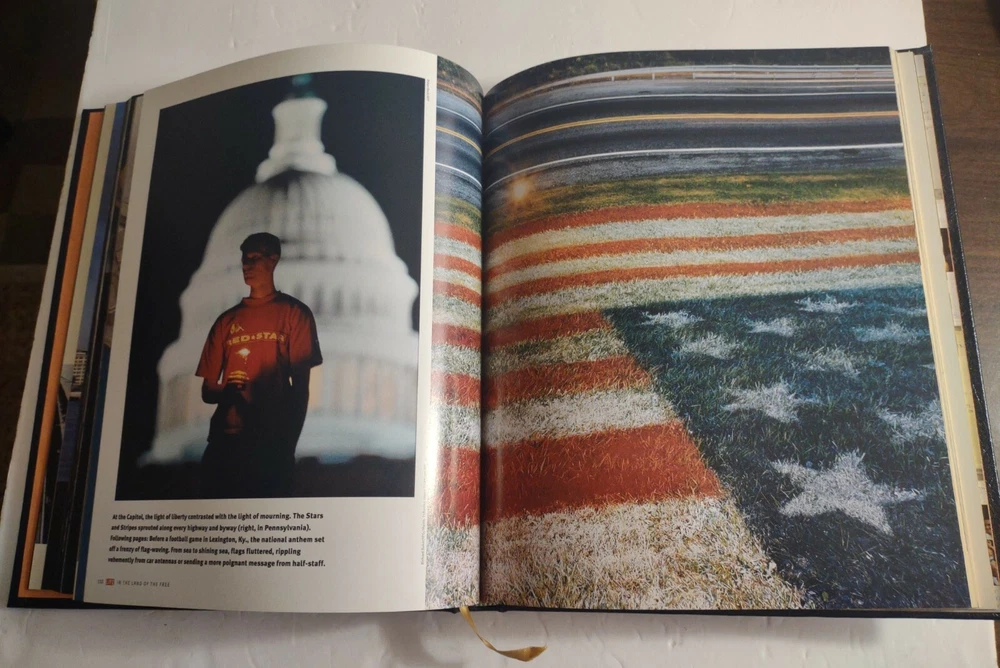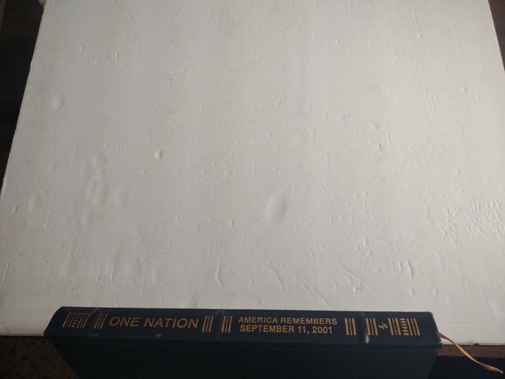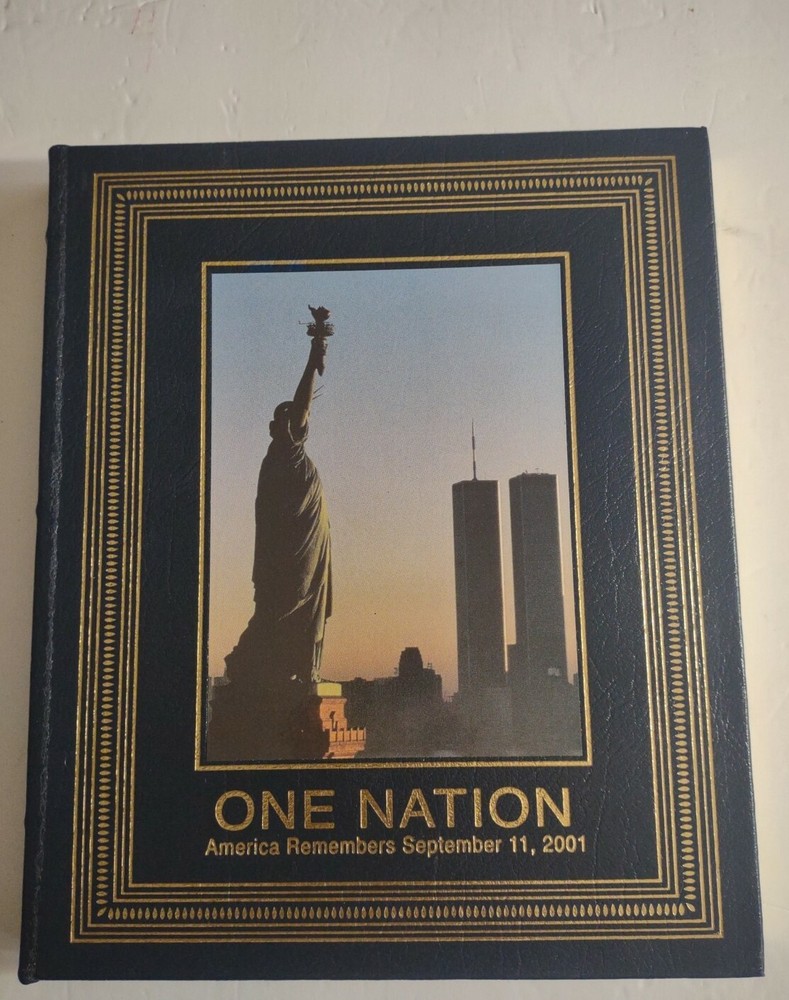 ONE NATION : America Remembers September 11, 2001 Leather Bound Hardcover Book.