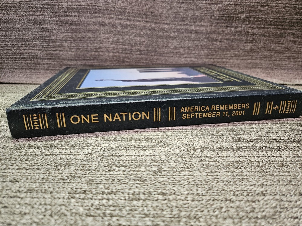 This rare and special edition book, titled "ONE NATION - America Remembers September 11th 2001", is a historical novel that includes detailed photos. The leather-bound collector's edition, published by Little Brown & Company in 2001, is a first edition and is intended for young adults and adults. This book is part of the historical book series and falls under the non-fiction narrative type. With its beautiful illustrations and detailed information, this book is a must-have for anyone interested in the history of the United States in the 21st century.