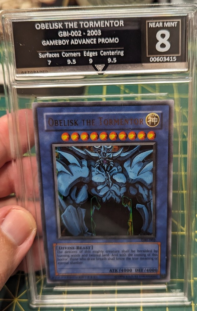 This listing is for 1 Rare Grade 8 Obelisk The Tormentor from the Gameboy Advance Promo set. It was graded by the GetGraded Grading company. I use eBay's Global Shipping Programme, as such the Postage and Packaging price will vary on the country you are in. Happy Collecting!!