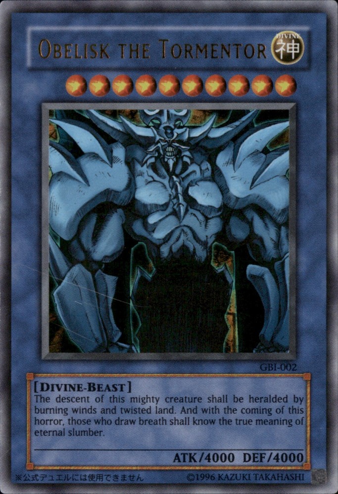 The Obelisk The Tormentor card is a highly sought-after Ultra Rare in the Yu-Gi-Oh! TCG. Belonging to the Yugi set, this Light attribute card is a promotional edition, making it a valuable collectable for fans of the game. With its impressive design and rarity, this card is a must-have for any collector looking to enhance their deck with a powerful and unique addition. surface scratches