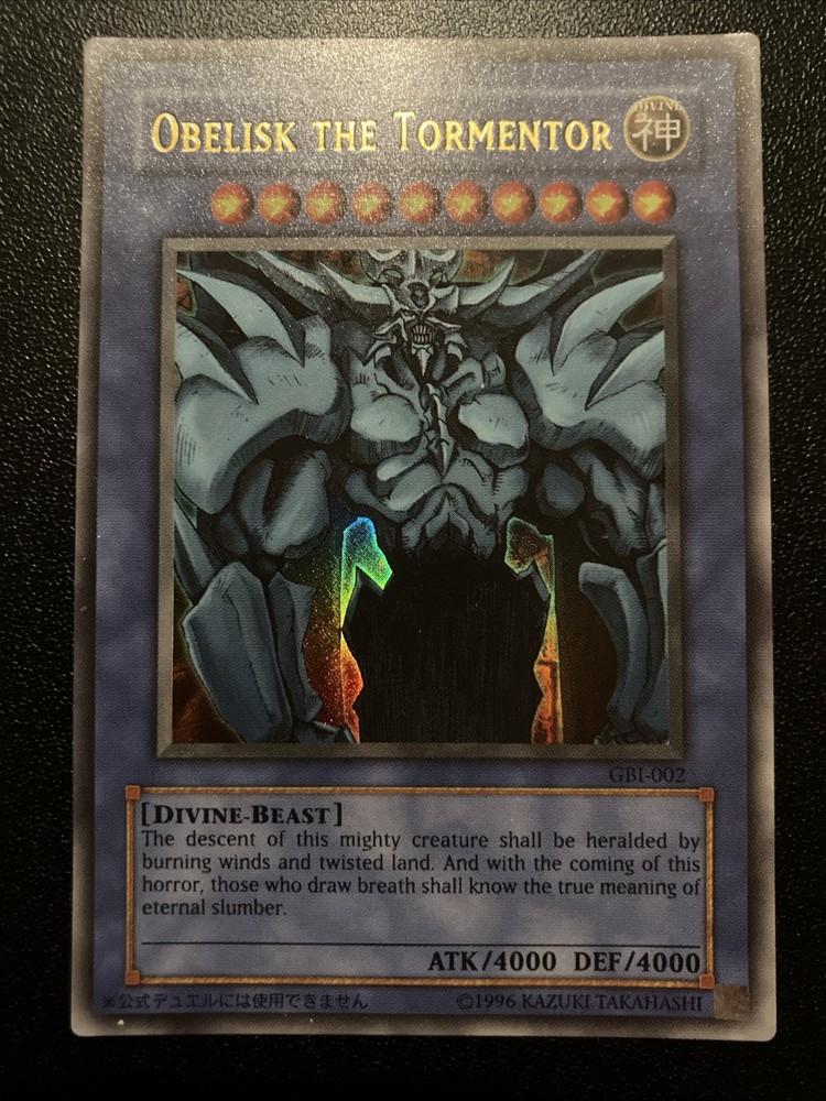 Delve into the realm of strategic duels with the Obelisk The Tormentor GBI-002, a formidable addition to any Yu-Gi-Oh! TCG collection. This iconic card from the classic '- Yugi -' set is a must-have for enthusiasts looking to enhance their gameplay or collectors seeking to complete their archives. With its striking artwork and powerful in-game abilities, Obelisk The Tormentor is a key piece that can tilt the tides of battle. Ensure that this pivotal card holds a place of honour in your deck or display, ready to unleash its awe-inspiring presence on the next unsuspecting opponent.