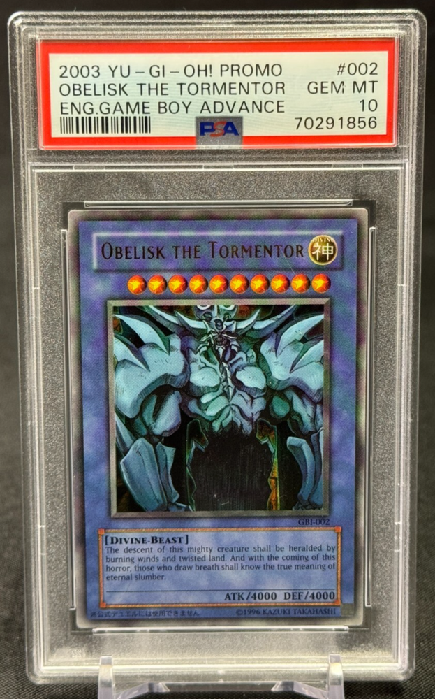 Obelisk The Tormentor Game Boy Advance Promo PSA 10 GEM 2003 Yu-Gi-Oh! #GBI-002 Please see front & back pictures to answer all questions you may have on item. We ask that you would kindly leave us a positive 5 star feedback once the transaction is complete, we will do the same for you. If your experience was less than a positive 5 star, please let us know what we can do to fix it! Customer Satisfaction is our goal. Thank you for checking out our store and this item. USA Shipping Rates (USPS): -Every item is shipped with a tracking number -Combined shipping available when multiple items purchased International Shipment: -Buyer can use eBay global shipping program or contact us directly for rates **God Bless and thank you for shopping at The Meelypops Shop**