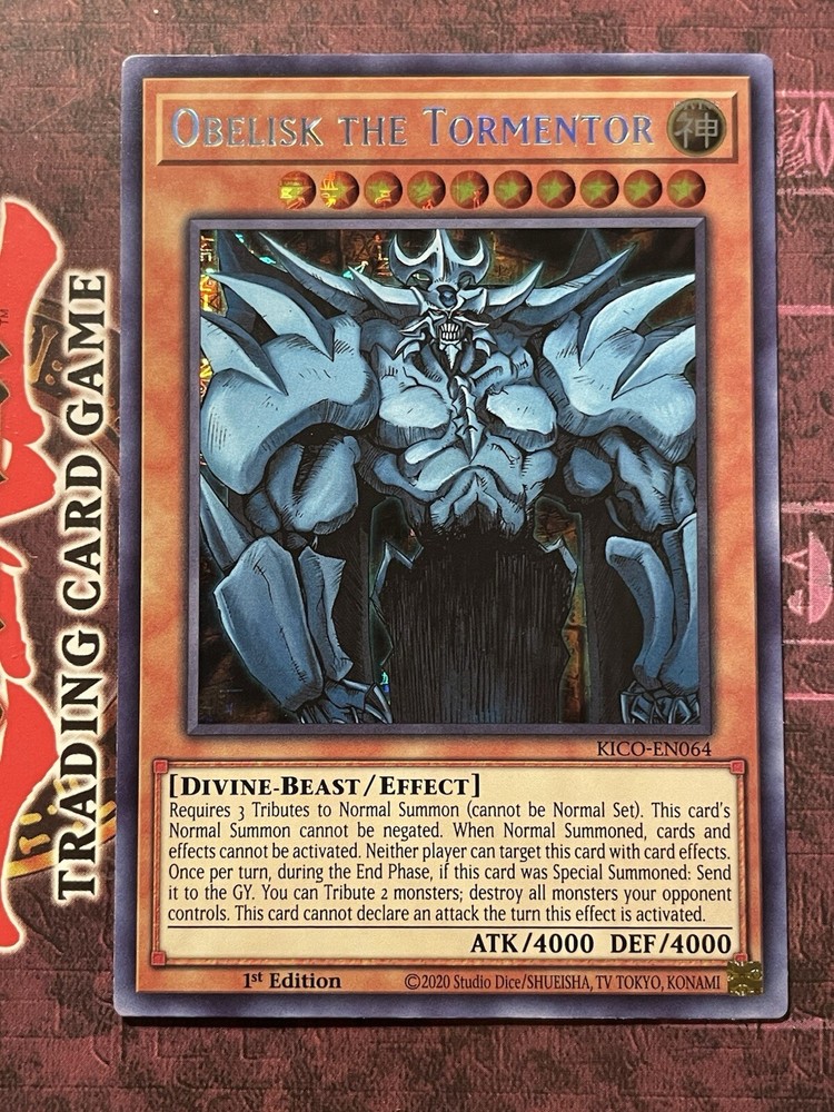 1x Obelisk The Tormentor (KICO-EN064) Secret Pharaoh’s Rare 1st Edition. Condition is lightly played (only imperfection is a small dent at the top edge of the card *please see pictures*). Shipped with USPS. Fast shipping with tracking and will be sent in a top loader. Thank you!