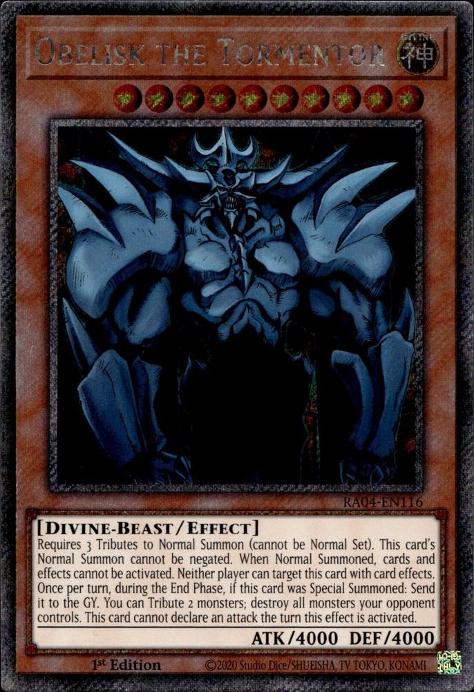 Obelisk The Tormentor Platinum Secret Rare 1st Ed NM YuGiOh RA04-EN116