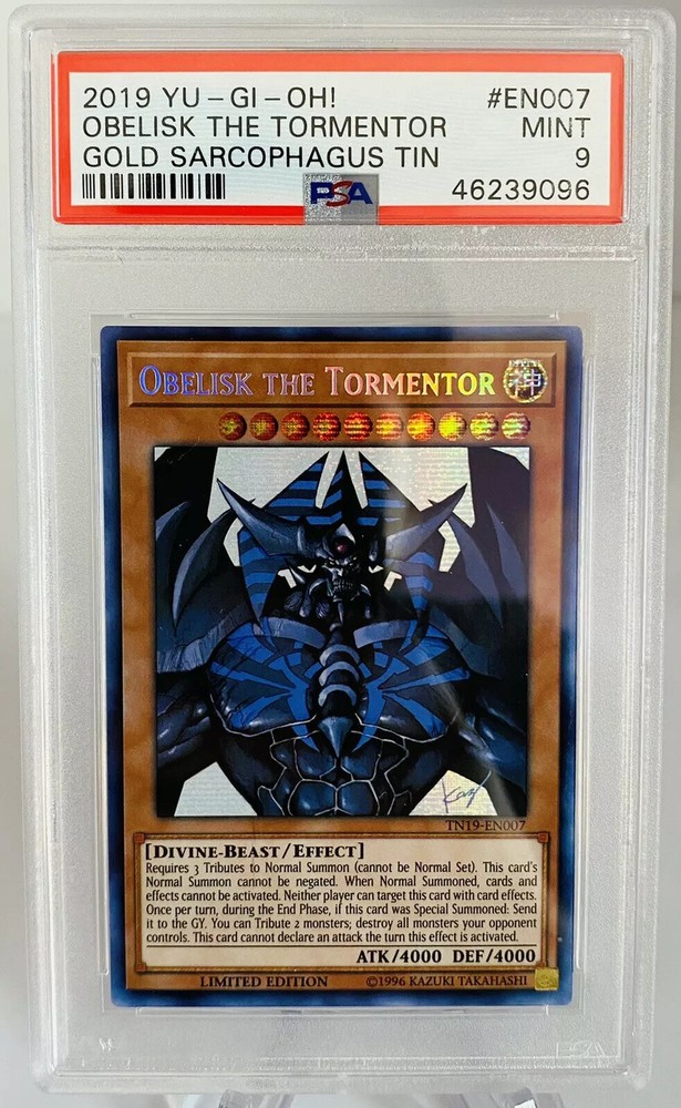 Obelisk The Tormentor Secret Rare 2019 Yu-Gi-Oh Card TN19-EN007 PSA 9 MINT. Condition is "New". Shipped with USPS First Class....