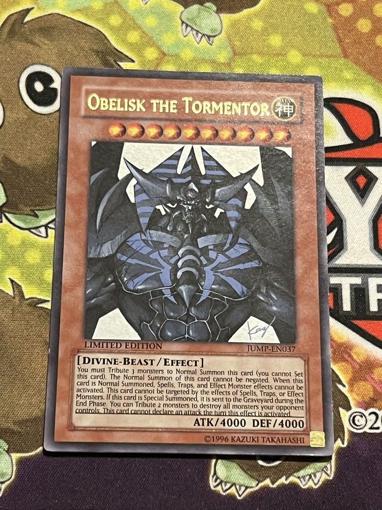 Obelisk The Tormentor Shonen Jump JUMP-EN037 Limited Edition Ultra Rare. Condition is Ungraded. Shipped with Economy Shipping.