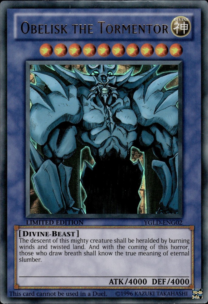 Obelisk The Tormentor Ultra Rare Limited Edition YGLD-ENG02 MP YuGiOh Card
