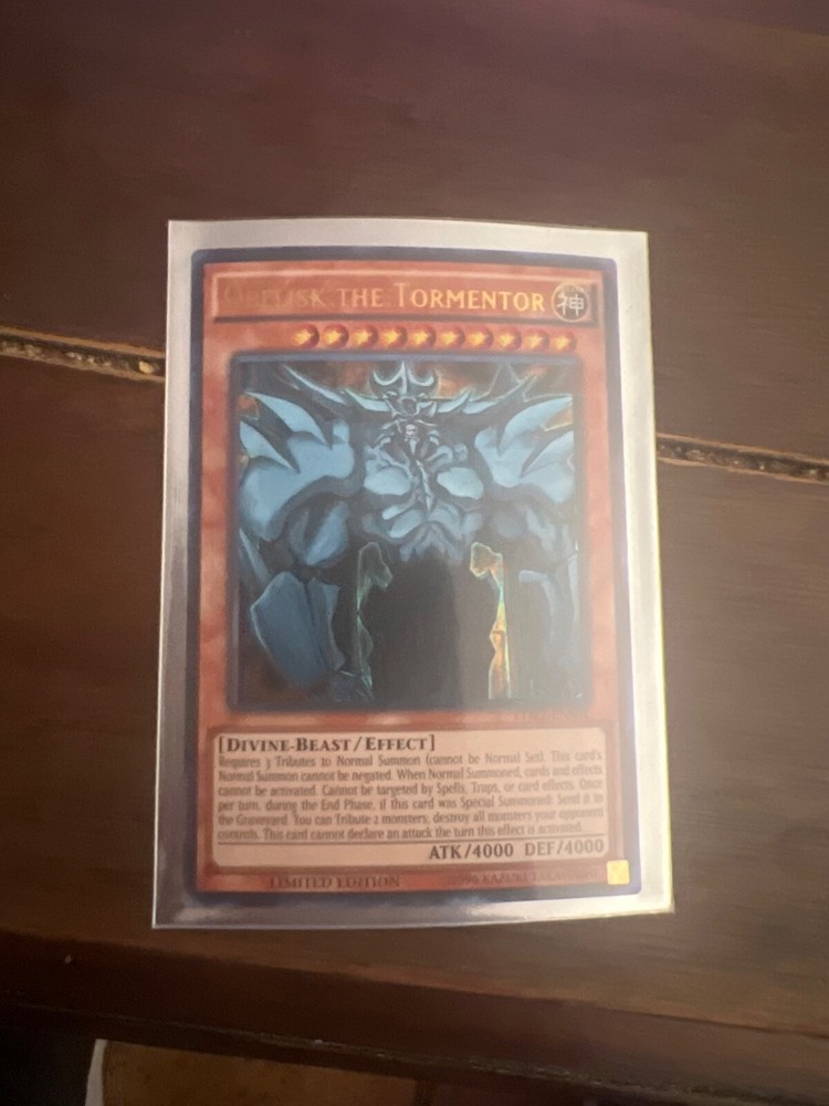 This card is a must-have for any Yu-Gi-Oh! collector! The artwork is stunning, the foil effect makes it stand out, and it's a powerful addition to any deck. The limited edition print adds extra value, and the quality is top-notch. If you're a fan of Obelisk, don't miss this one—it's worth every penny!