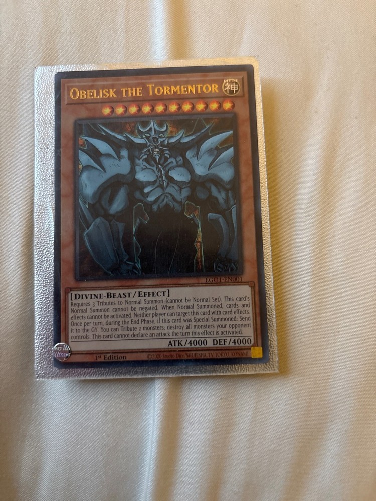 This Obelisk the Tormentor card is an absolute powerhouse—4000 ATK/DEF makes it a game-changer! The PSA 10 grade guarantees pristine condition, and the Ultra Rare 1st Edition finish makes it a collector’s dream. Whether you’re dueling or displaying, this Egyptian God card delivers unmatched value and nostalgia. A must-own for any Yu-Gi-Oh! fan!