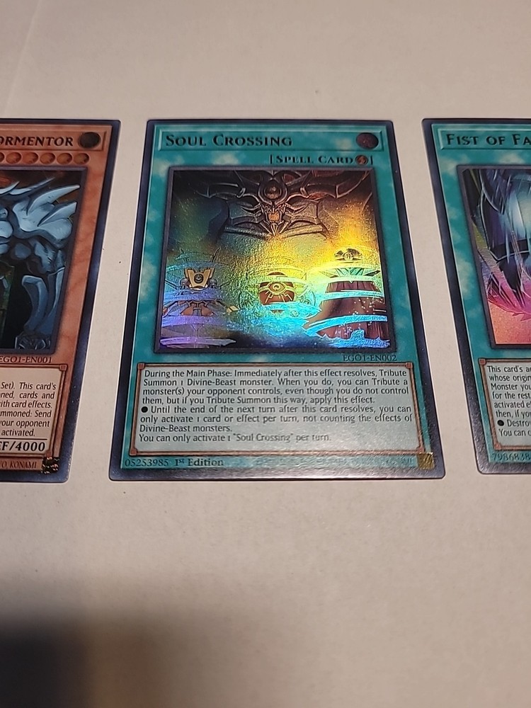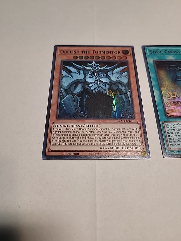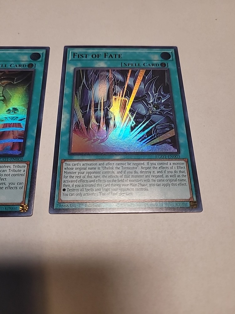 Obelisk the tormenter from EGO1 Near mint with his two spell card Soul crossing and Fist of Fate both near mint as well. Beautiful set and if you have any questions please ask away!...