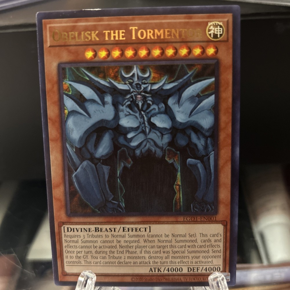 This Obelisk the Tormentor card is amazing! The Ultra Rare 1st Edition looks just like the photos—so crisp and vibrant. The seller ships it securely in a top loader, which is great for protection. If you're a Yu-Gi-Oh! fan, this is a must-have for your collection. Very happy with this purchase!