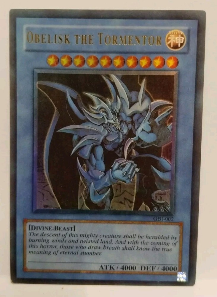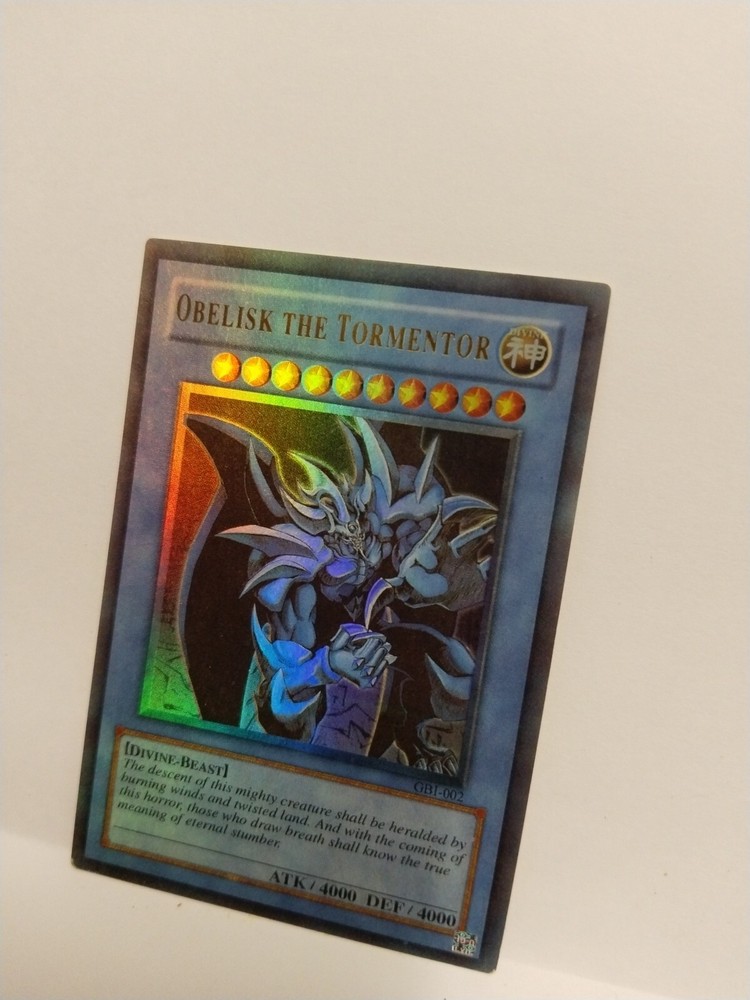 TObelisk the Tormentor GB1-002 Ultra Rare Yu-Gi-Oh! TCG card from Konami. (Issued as a Promo with Gameboy Purchase) . NO marks or creases. This listing is for a trading card game single , It is in lightly played condition excellent condition or greater I list all cards as lightly played as as they are from an opened booster or packet and between 20 - 30 years old If there are any faults they are noted in the description. Photos are of the actual item I also pack and post with love and care . The cards have been stored in archival conditions away from dust and list