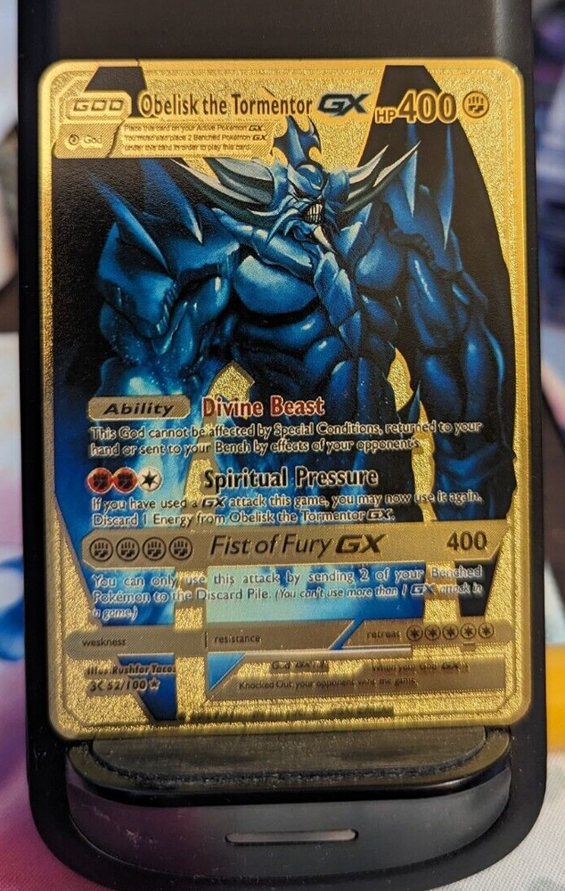 Obelisk the Tormentor GX Yugioh Gold Metal 💥 Fan Art💥NM Enahnaced CUSTOM Card...