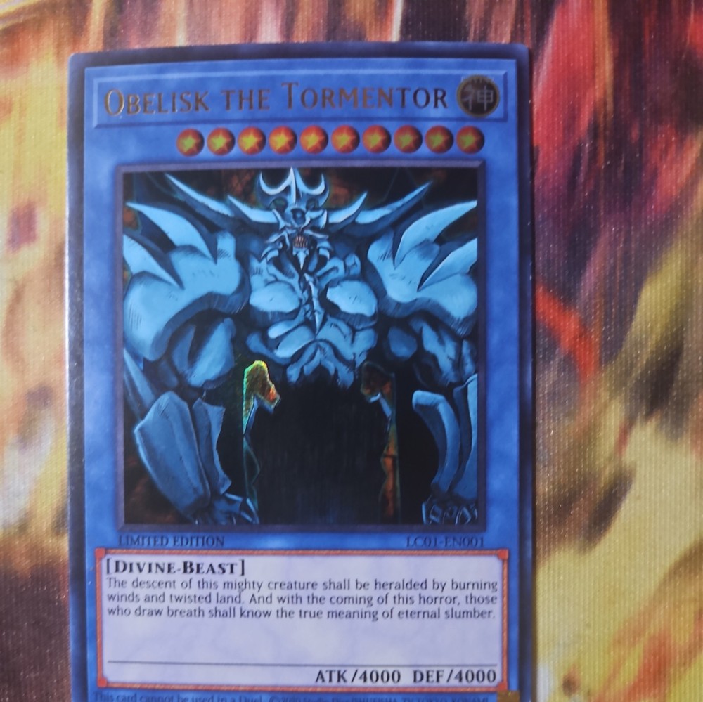 Unleash the power of ancient Egyptian mythology on your opponents with Obelisk the Tormentor, from the highly coveted Legendary Collection 25th Anniversary Edition. As an Ultra Rare, Limited Edition card, this piece is a must-have for collectors and competitive players alike, providing a touch of rarity and might to your deck. With card number LC01-EN001, this Obelisk is not just a powerful monster, but a collectible artwork that celebrates the long-standing legacy of the Yu-Gi-Oh! game. Enhance your collection or prepare for your next duel with this iconic creature that stands as a testament to the game's enduring appeal. Picture is of exact card buyer will receive. card will be sent in a protective card sleeve and in a standard envelope thru USPS