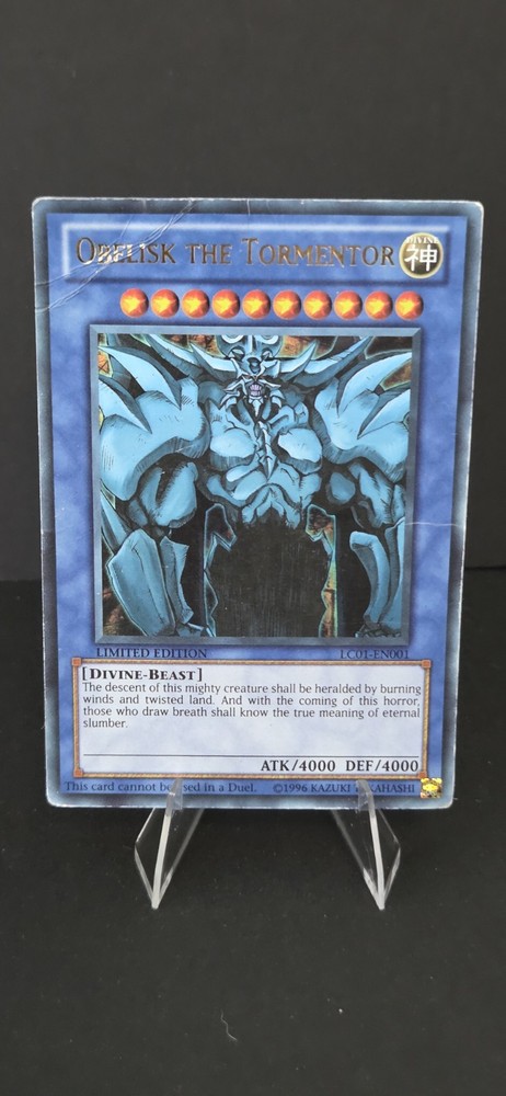Obelisk the Tormentor LC01-EN001 Yu-Gi-Oh Legendary Collection 1 Limited Edition. Card is HP-Damaged. See photos for condition.