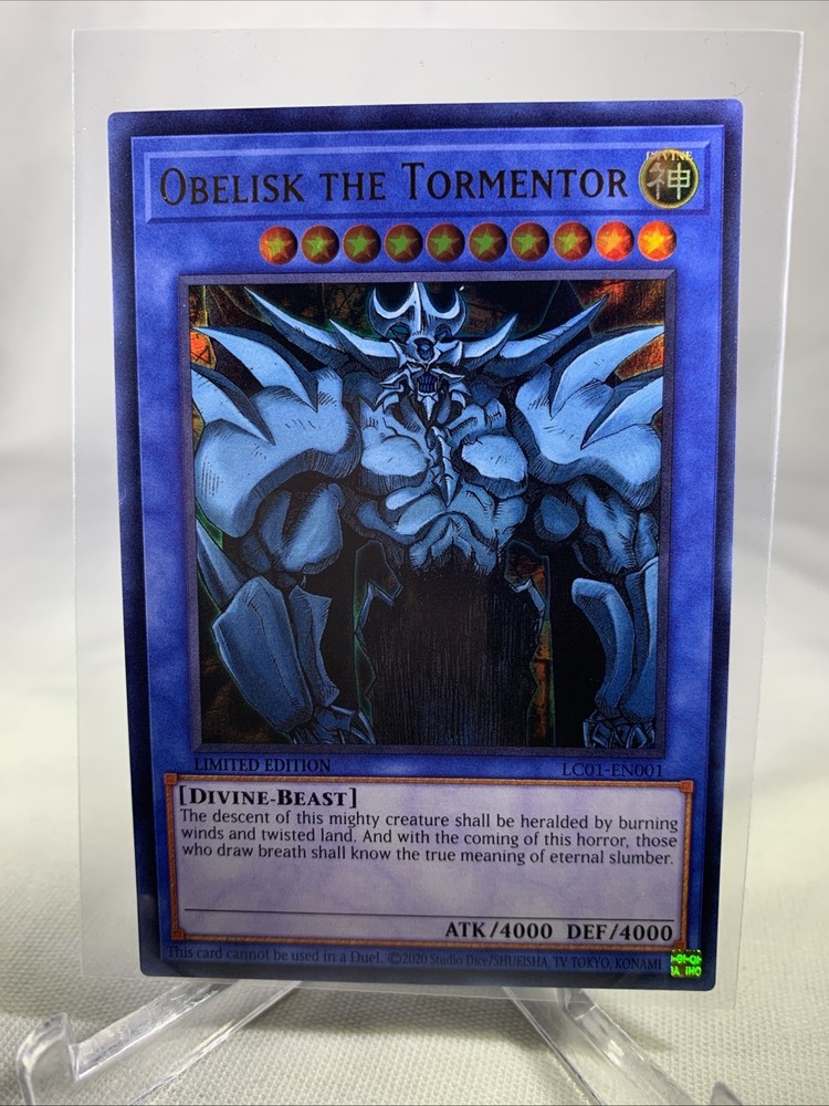The Obelisk the Tormentor LC01-EN001 card is part of the Yu-Gi-Oh Legendary Collection Limited Edition set. This English-language card is a sought-after collectible for fans of the Yu-Gi-Oh TCG. As a limited edition card with a unique design and number, it holds value for collectors and enthusiasts alike. The Obelisk the Tormentor card, known for its powerful abilities and iconic status in the Yu-Gi-Oh universe, is a prized addition to any card collection.
