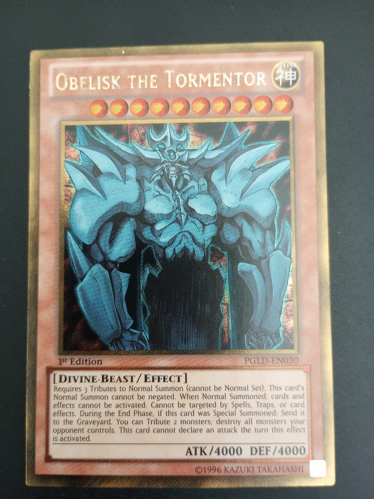 Obelisk the Tormentor - PGLD-EN030 - Gold Secret Rare 1st Edition NM. Packaged in top loader sleeve....