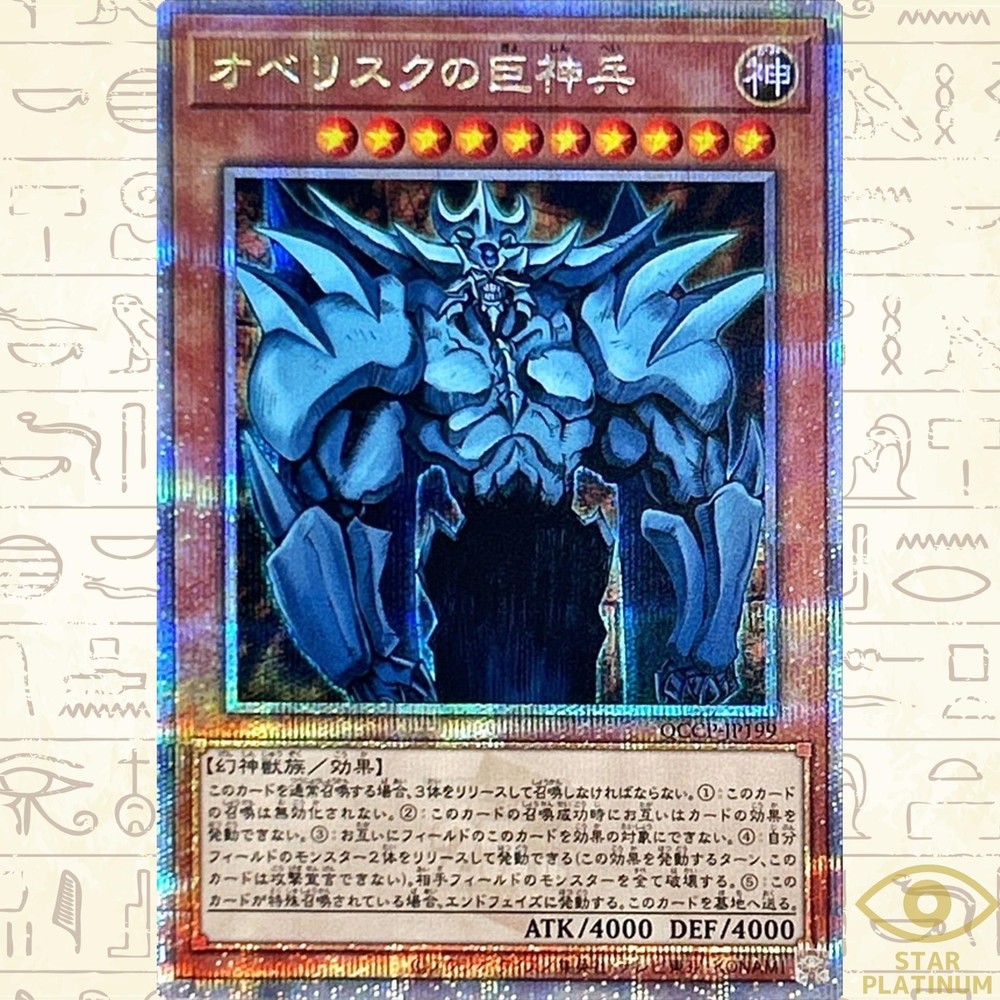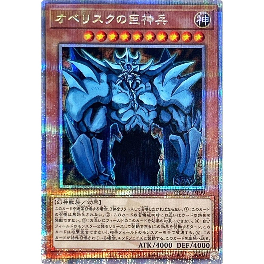 Description Obelisk the Tormentor Quarter Century QCCP-JP199 side:Pride Japanese YuGiOh - NM Condition : Near Mint Condition - As a Trading Cards collector myself, I can check the condition exactly. 【NM】Near Mint (4/4): Display minimal or no wear or damage. All surfaces and edges are pristine and appear “fresh out of the pack. 【EX】Excellent (3/4): Have slight corner and edge wear along with minor scratches on the surface, but no other flaws. 【VG】Very good (2/4): Have discernible flaws such as border and corner wear, noticeable scratches and creases, slight bends, notching, layering, and moderate discoloration or whitening. 【PR】Poor (1/4): Show a massive amount of wear and damage. Corners and edges will be rounded, chipped, or fuzzy, and there will be major discoloration, layering, notching, creasing, and scratches. - I follow “eBay card conditions and guidelines”. - Click here for details : https://pages.ebay.com/cardconditions/ Shipping Economy Shipping Japan Post Air Mail : takes about 1~2 weeks, +Handing time No tracking. Standard Shipping Japan Post Air Mail : takes about 1~2 weeks, +Handing time With tracking. Expedited Shipping FedEx or EMS : takes about 1~4 days, +Handing time With tracking. - Use a loader, waterproof pack, and put it in a cushioned envelope. - You can save shipping fees when you buy multiple items. No charge shipping fees for additional items. International Buyers - Please Note: Import duties, taxes and charges are not included in the item price or shipping charges. These charges are the buyer's responsibility. Please check with your country's customs office to determine what these additional costs will be prior to bidding/buying. These charges are normally collected by the delivering freight(shipping) company or when you pick the item up -do not confuse them for additional shipping charges. We do not mark merchandise values below value or mark item as "gift" -US and international government regulations prohibit such behavior.