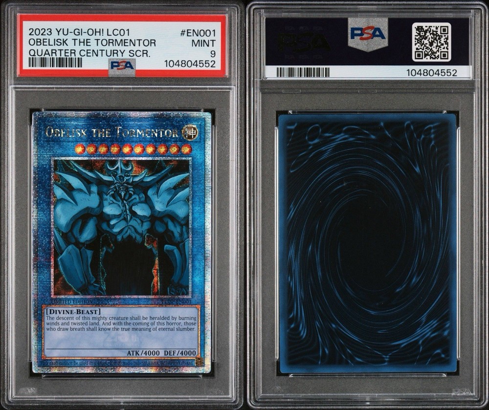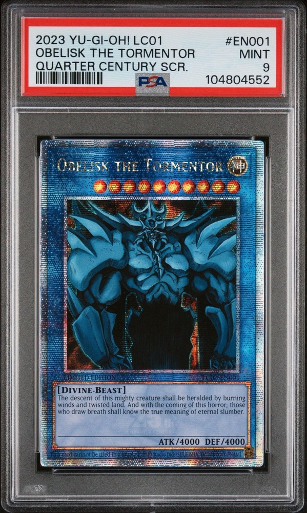 The 🔥Obelisk the Tormentor (Quarter Century Secret Rare LC01-EN001) from the Yu-Gi-Oh! TCG is a highly sought-after card in the gaming community. This Divine-Beast type card with a high defense and attack power of 4000 is a limited edition collectible that celebrates the 25th anniversary of the franchise. Manufactured by Konami and signed by 5ban Graphics, this English language card features a holo finish and is a must-have for any collector or player looking to enhance their deck with a powerful addition.