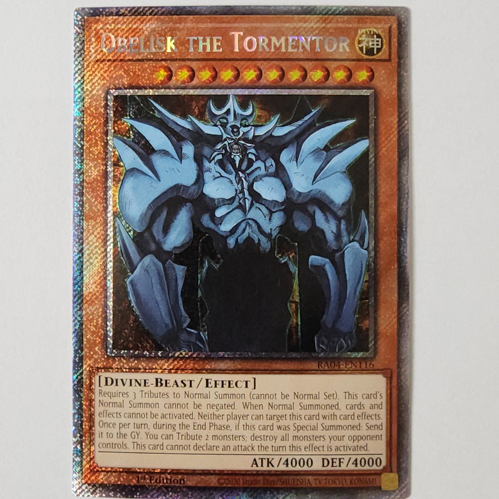 Obelisk the Tormentor - RA04-EN116 - NM - Platinum Secret Rare - 1st ed - Yugioh Quarter Century Stampede Don't forget to click on the store icon for more great deals on singles, playsets, deck cores, and sealed products!