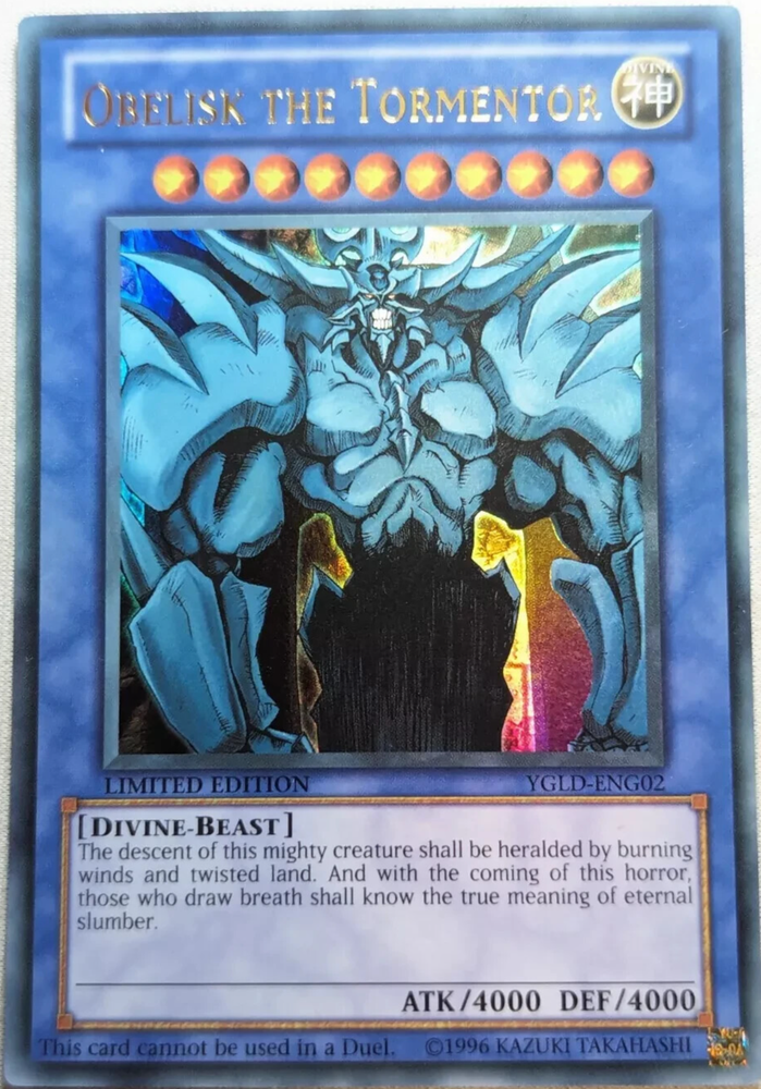 Obelisk the Tormentor YGLD-ENG02 Ultra Rare Limited Edition YuGiOh Card