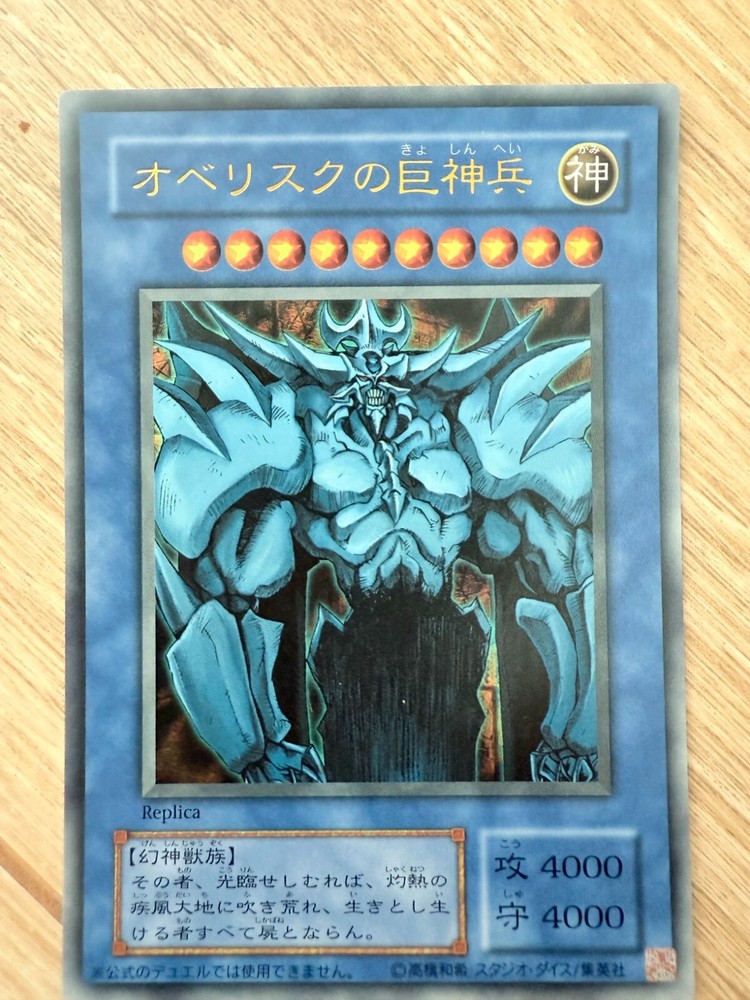 Unleash the power of the ancient Egyptian God with Obelisk the Tormentor from the Yu-Gi-Oh! TCG. This iconic card features stunning alternative art and is a must-have for collectors and duelists alike. As a basic, light attribute creature/monster type, it boasts an attack and defense power of 4000, making it a formidable addition to any deck. First released in Japan in 2000, this ultra-rare card comes from the highly sought-after 2006 set and is a tribute to the classic characters Yami Yugi and Seto Kaiba. It's a non-autographed, normal card size, featuring the divine-beast stage, and is perfect for players aged 4 and up. Add this limited edition piece to your collection and shine a light on your opponents with Obelisk's majestic presence.