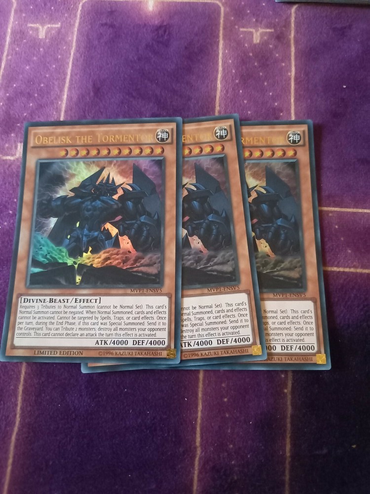 Absolutely thrilled with this purchase! The cards arrived quickly and in great condition for being used. Love the mix of editions—makes deck-building so much more fun. Seller was super responsive when I messaged my preferences. Perfect for any Yu-Gi-Oh! collector or player looking for Obelisk variations. Would definitely buy again!