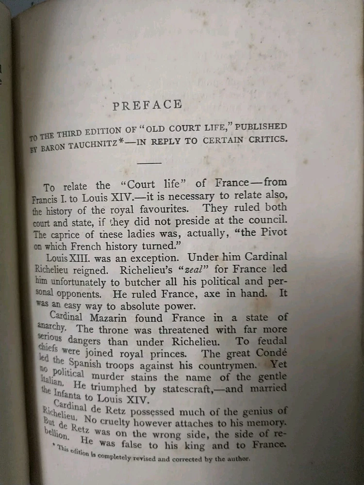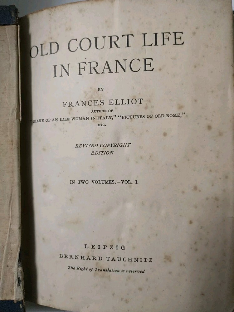 This is a rare and valuable collector's edition of "Old Court Life in France Volume 1" by Frances Elliott, published in 1872 by Leipzig. The leather binding adds to its durability and elegance. The book is a historical gem that provides a glimpse into the past of France, with topics ranging from the court life to the history of the country. It is a must-have for any history enthusiast or book collector.