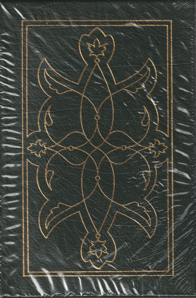 Full dark green leather with gilt decorative design, all edges gilt, satin ribbon marker, and silk moire endpapers. Smyth-sewn and bound in top-grain leather with raised bands on spine. Printed on specially milled acid-neutral paper. A beautiful book. Collector's Edition - Library of the Presidents.