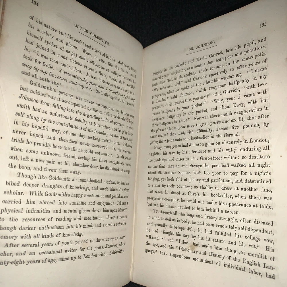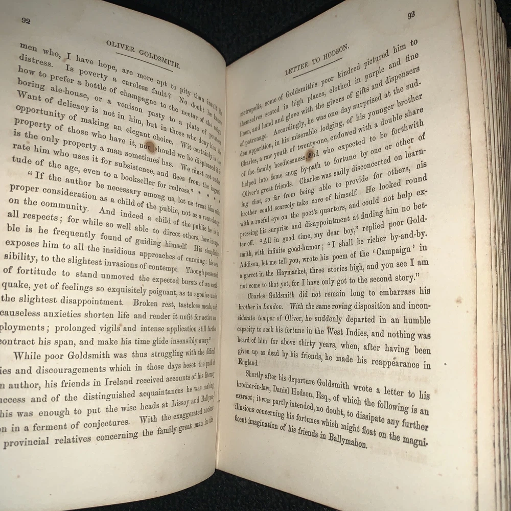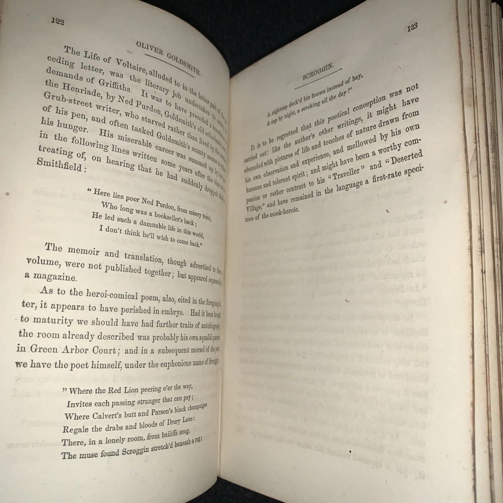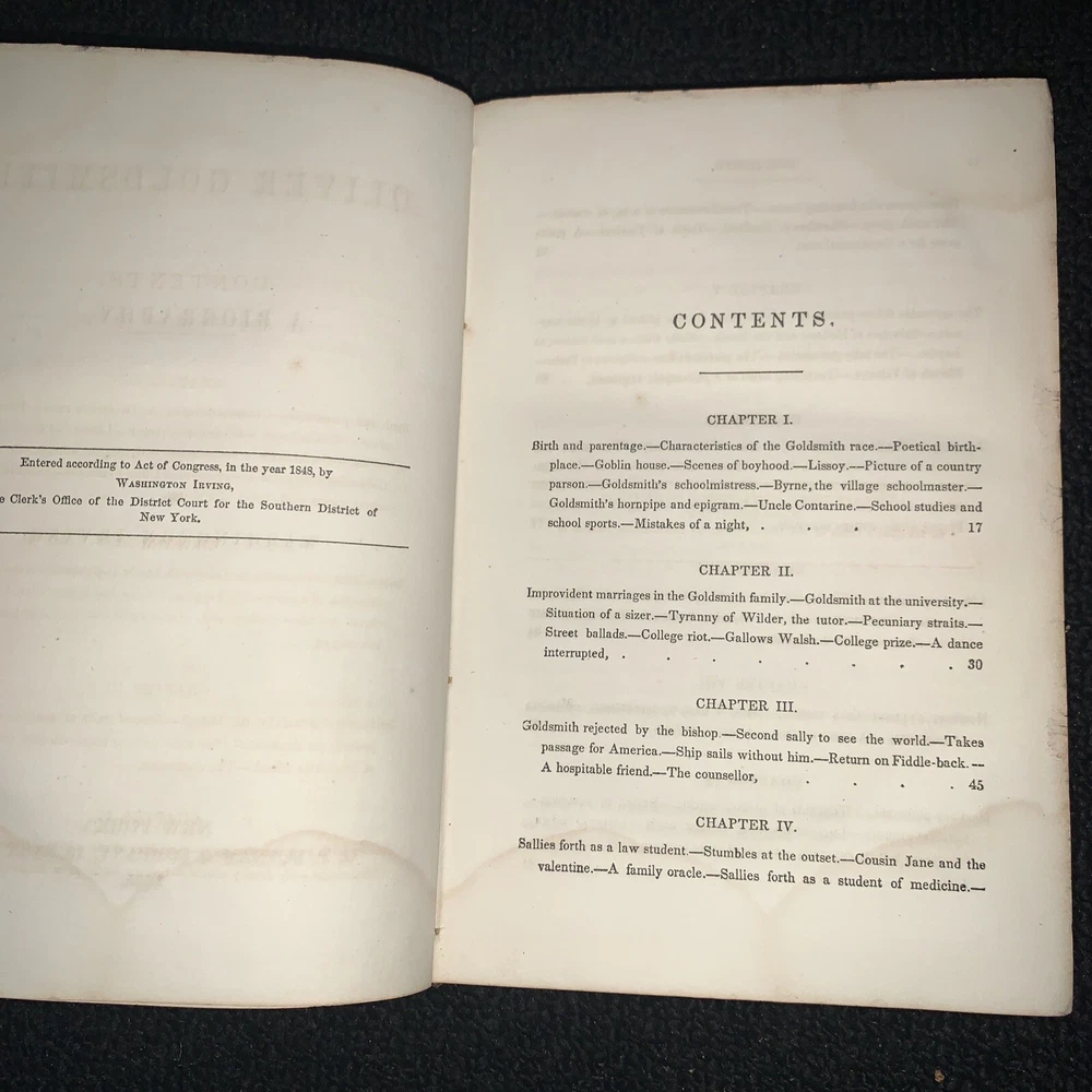 Oliver Goldsmith A Biography by Washington Irving 1855 Old Leather Book. Detached front cover, loose back cover, 382 pages. 7 1/2x5x1 1/4”. Please look at all pictures and ask any questions before purchasing. I do my best to show and describe all flaws so you know exactly what you are buying. I combine shipping on most orders. Follow my store for many more great books and deals. Thanks for looking and supporting my business! Inventory#639