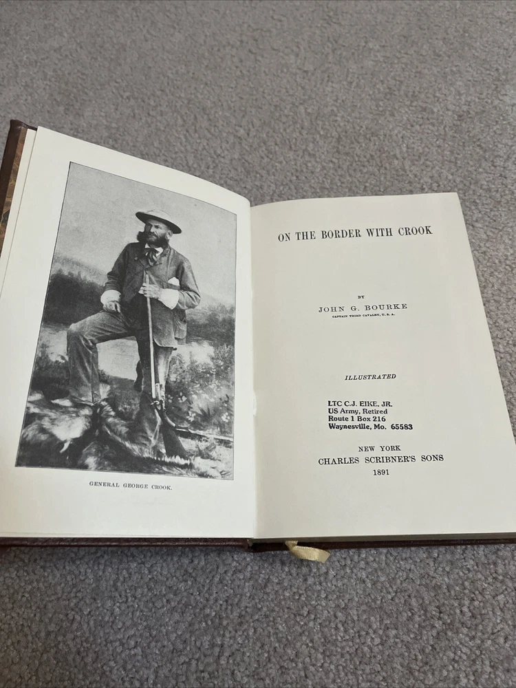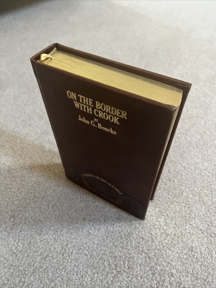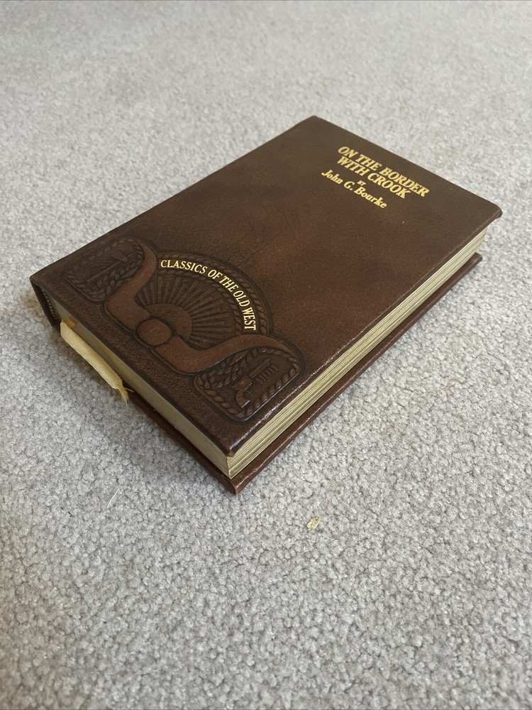 The product is a leather-bound book titled "On the Border with Crook" by John G Bourke, published by Time Life Books. The book is a classic of the Old West, focusing on the history of the frontier. It is written in English and was manufactured in the United States. This collectible item would be a valuable addition to any bookshelf, especially for those interested in the history of the American West.