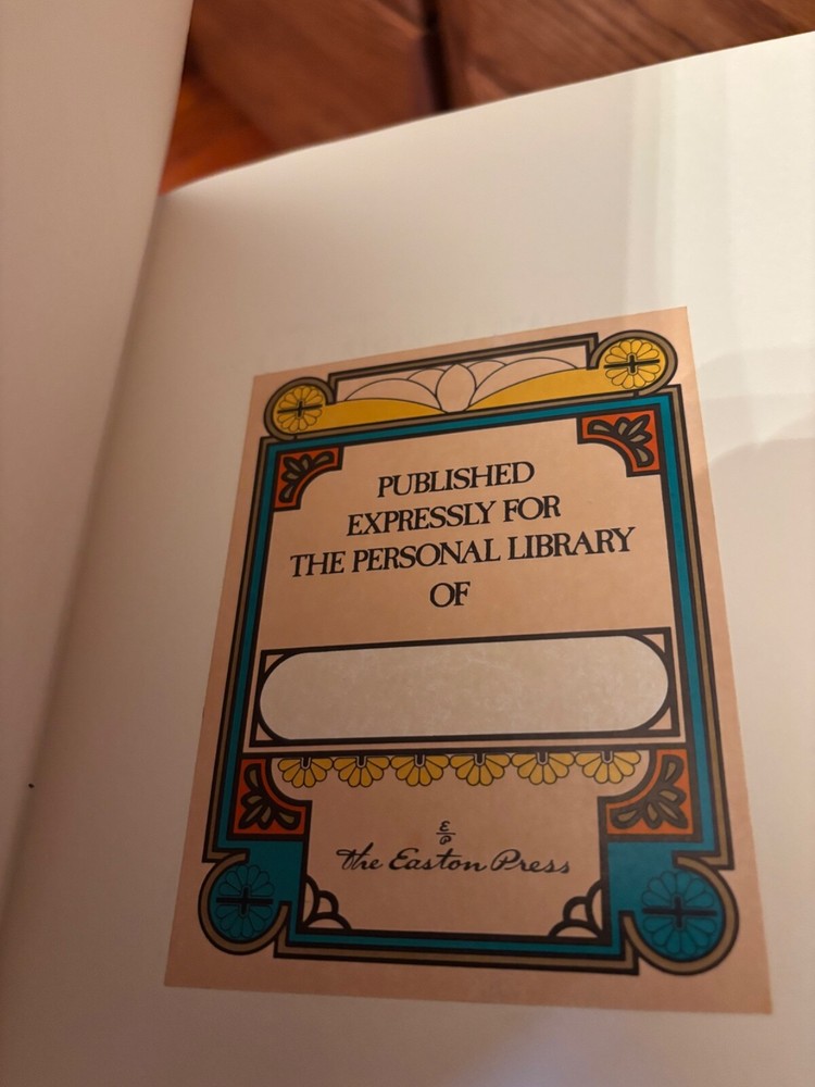 Easton Press(1976)full leather hardcover, 22K gold accented, decorated endpapers, ribbon marker, full color illustrations, book is in “Fine” condition, obviously unread and appearing unused, blank bookplate affixed to half title page, very minor wear........(please see my many feedbacks for an idea of how I grade books and generally do business) (see my EBay store for the finest books & prices, many signed).......(No remainder marks or price-clipping)...............Always shipped in a box, well protected