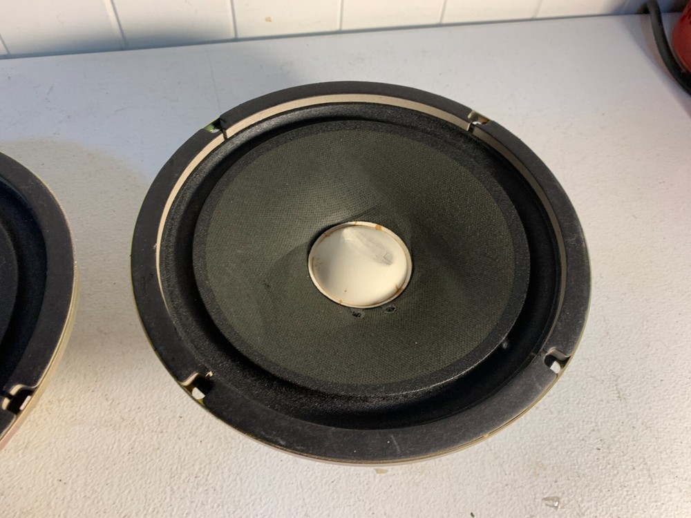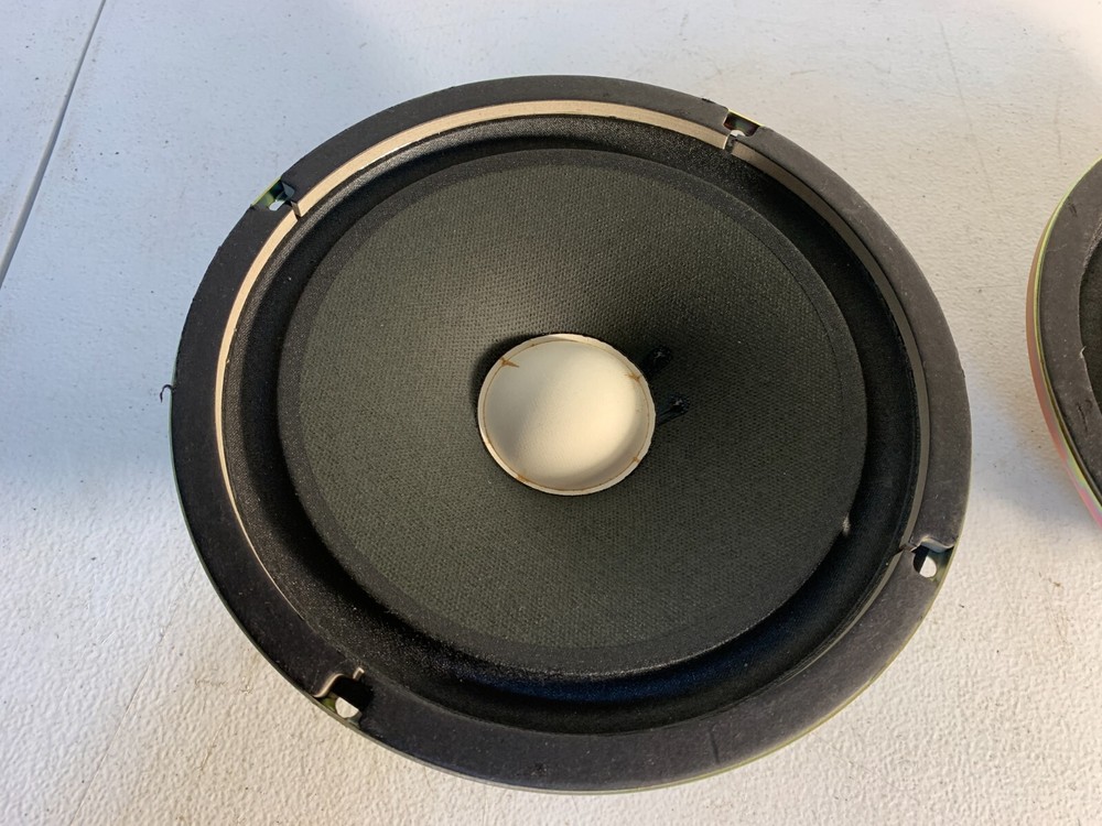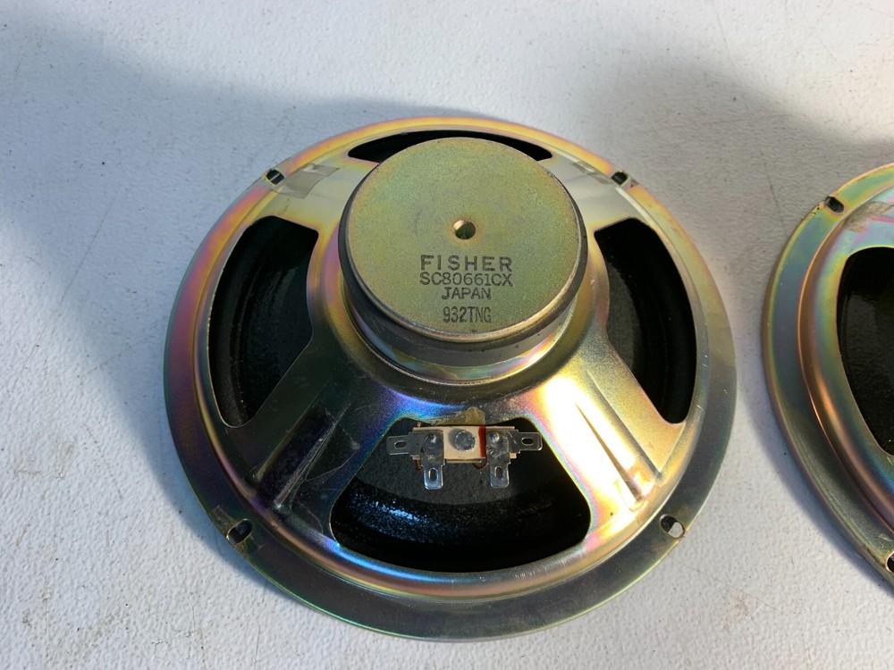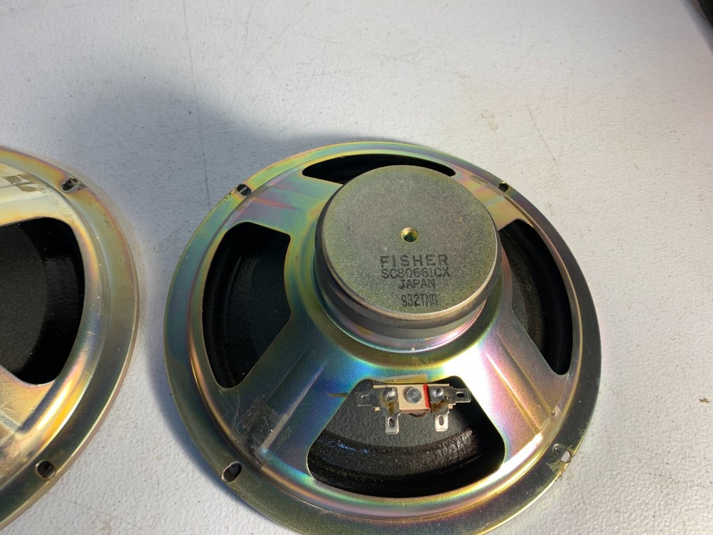 Original NOS Pair of Fisher/Sanyo 8" MS-127 Woofer P/N: SC-80661-CX Japan #2 These are new. Tape was put on them at some point because they were moved. One of the domes has a dent. Both have Ohm readings. See photos. Sold as is . Original NOS Pair of Fisher / Sanyo 8" Woofers – P/N SC-80661-CX – Japan – MS-127 Offered here is a new old stock (NOS) matched pair of 8" woofers originally used in the Fisher MS-127 speaker system , manufactured by Sanyo in Japan . These woofers are unused , never mounted , and still retain their factory originality. Specs & Details: Model Compatibility : Fisher MS-127 (and possibly other Fisher/Sanyo models) Part Number : SC-80661-CX Size : 8 inches (frame diameter) Made in Japan Rubber surrounds in excellent, supple condition Original paper cones – no punctures, cracks, or repairs Factory solder terminals – never used Magnet and frame paint fully intact Condition: NOS (New Old Stock) – never installed Stored in a dry, climate-controlled environment No corrosion, cone sag, or surround deterioration These are perfect replacements for restoring vintage Fisher MS-series speakers, or for custom DIY builds needing that classic 1980s Japanese sound profile — tight bass, natural midrange .
