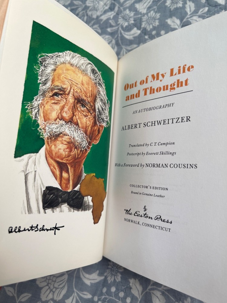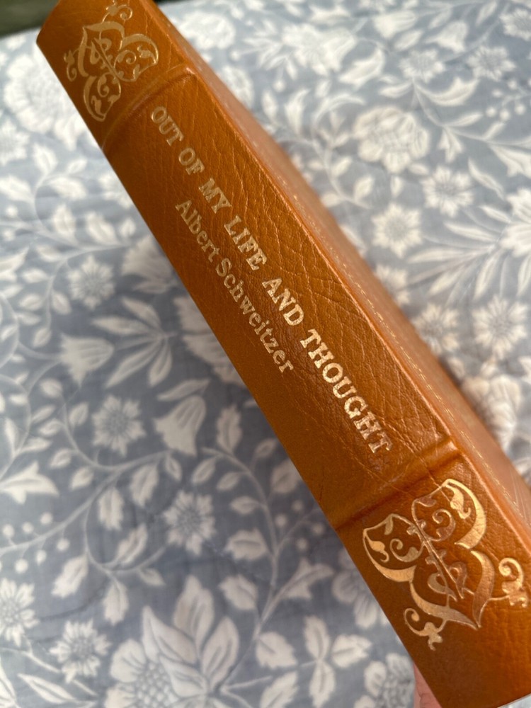 Out of my life and thought By Albert Schweitzer Leather bound with gold Collectors addition Like new Easton Press