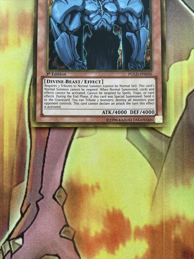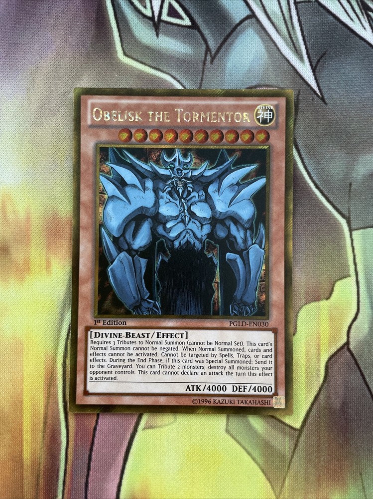 Listing Template 2018 Home About Us Shipping Returns View Feedback Contact Us PGLD-EN030 Obelisk The Tormentor Gold Secret Rare 1st Edition Yugioh Card NM This card is in near mint condition. Please check the photos for more questions on condition or please just ask! Thanks for viewing! Please check out my eBay store for more cards and to use our promotional offers! We offer COMBINED INTERNATIONAL SHIPPING! Please contact us and ask us to combine your shipment! We provide UK free postage! All of our cards are sleeved, with a taped Toploader to ensure maximum protection, and the best overall condition of your cards! Do you want to earn extra cash for your old cards? Clear out your binder and send us photos of what you have! We will happily send you an offer and sort out postage to make it hassle free. There's no harm in trying! Message us now! You will receive these cards in very good condition as shown! Thanks for looking! Free delivery. Honest Sellers. We care about your cards and your satisfaction. About Us Based in United Kingdom, twintraders has been an eBay member since 02 Mar, 2006 Contact Us The best way to contact us is through the eBay messaging system. You can send us a message by using the "Questions and answers" section towards the bottom of the page. Feedback We will always help you to have a 100% positive happy buying experience. Contact us if you are unhappy about any aspect of your purchase from us. We only want five star feedback from you so buy with confidence. View Our Categories Check out our discounts/deals for better value!