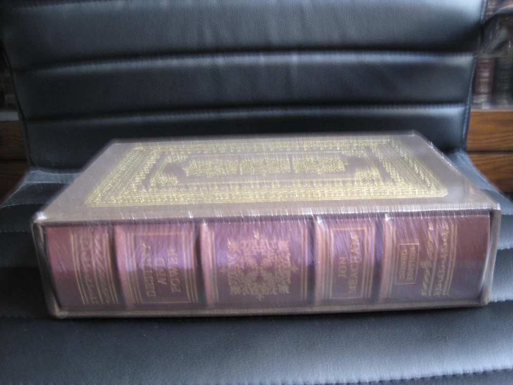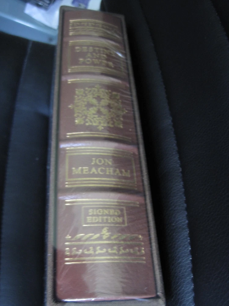 This is a leather bound signed deluxe collector's edition of former President George H W Bush's best selling biography - "Destiny and Power" , authored by award winning journalist and historian Jon Meacham. In this brilliant biography, Jon Meacham, the Pulitzer Prize–winning author, chronicles the life of George Herbert Walker Bush. Drawing on President Bush’s personal diaries, on the diaries of his wife, Barbara, and on extraordinary access to the forty-first president and his family, Meacham paints an intimate and surprising portrait of an intensely private man who led the nation through tumultuous times. From the Oval Office to Camp David, from his study in the private quarters of the White House to Air Force One, from the fall of the Berlin Wall to the first Gulf War to the end of Communism, Destiny and Power charts the thoughts, decisions, and emotions of a modern president who may have been the last of his kind. This is the human story of a man who was, like the nation he led, at once noble and flawed. The book is new, unread, still sealed in the publisher's shrink wrap. It is signed by both former President Bush, and author Jon Meacham on the limitation page. It also includes the signed and dated certificate of authenticity. This exquisite deluxe leather bound edition was published in a limited release of only 250 signed copies. Easton Press books are the golden standard in the publishing industry, highly collectible and lasting generations. Easton Press Full Genuine Leather Dubbed Spine Accented Wit 22 kt. Real Gold Satin Ribbon Page Marker Distinctive Cover Design Gilded Page Edges To Protect Against Humidity High Quality Acid - Free paper Smyth-Sewn Pages Silk-Moire Endleaves I combine multiple items for savings on shipping charges. I ship worldwide. Please ask about international shipping charges and/or different shipping options. Thank you!