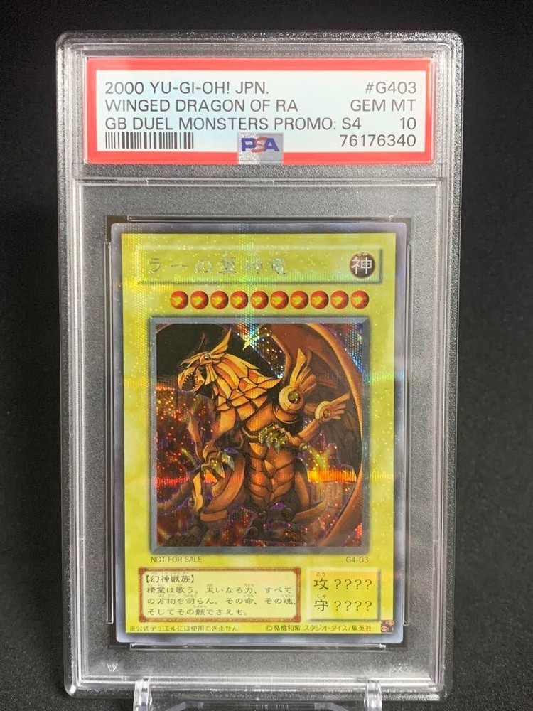 PSA 10 Gem Mint Winged Dragon of RA G4-03 GB Duel Monsters Promo S4 Japanese Description Grade: Brand new Appearance of the item Beautiful as photos. Please check on the photos for detailed condition of the product. If you have any question or concern, please do not hesitate to contact me. Thank you for visiting. Please Note for International Buyers We ship items from Japan. Import duties, taxes (example VAT, GST), and charges are not included in the item price or shipping cost. These charges are the buyer's responsibility. Please check in advance about those additional costs in your customs office before buying. Generally, those additional costs will be charged by the carrier when you receive the item. We write the customs declaration correctly. No undervalue. No checkmark gift. Click here and go to my listings!