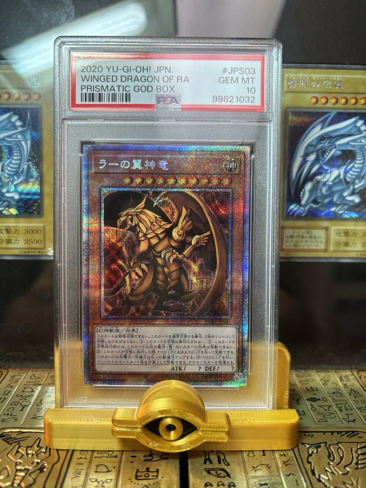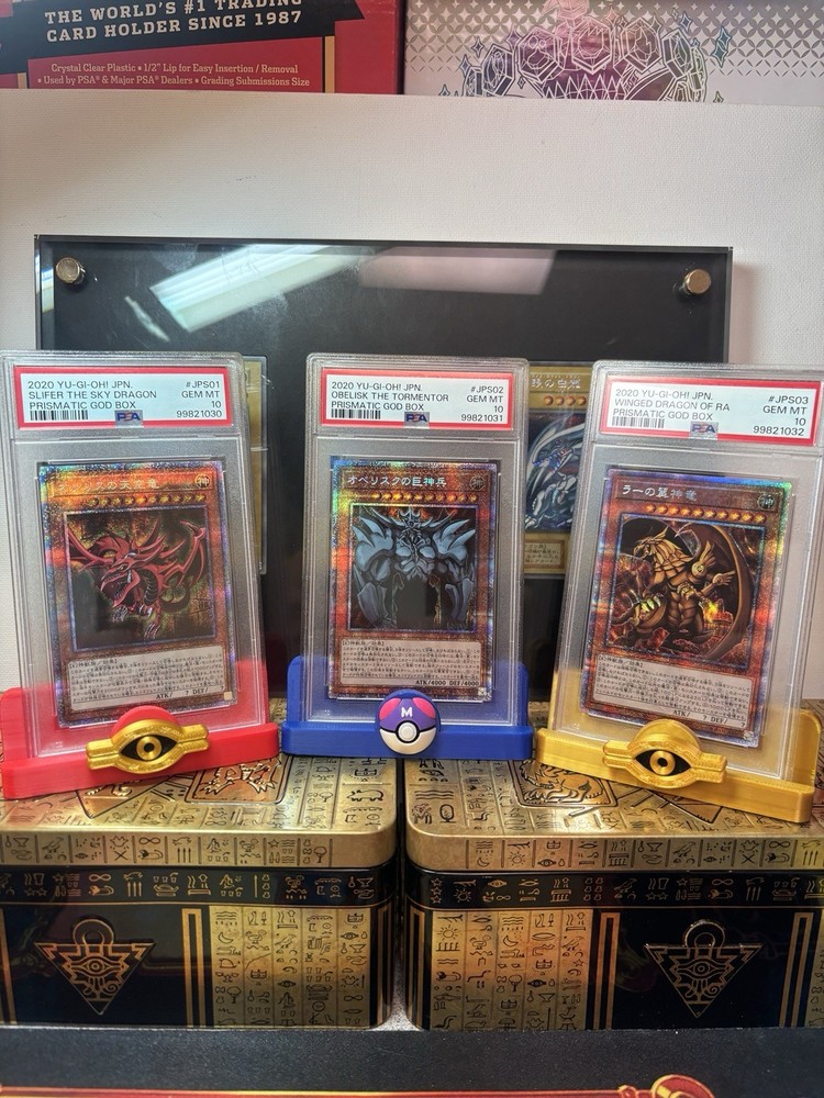 For Sale PSA 10 Egyptian God Prismatic Japanese Yugioh cards Slifer Obelisk and Winged Dragon Of Ra. You will receive all three cards in PSA 10 as depicted in the photos. Sold as a lot of 3 sequential...