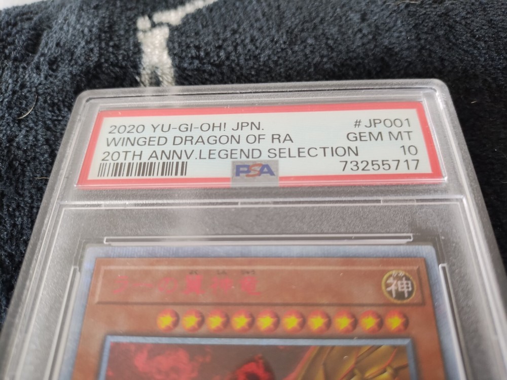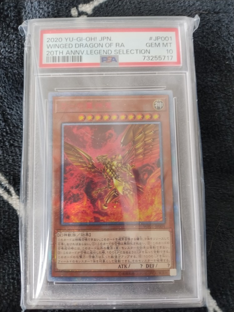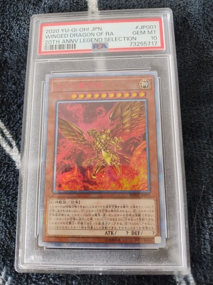 This PSA 10 Winged Dragon Of Ra 20th Anniversary Legend Promo WP01-JP001 Yugioh card is a rare and valuable addition to any collector's set. With its beautiful and unique art, this Japanese card features the ultimate stage of the Winged Dragon of Ra, and is made of high-quality card stock material. The card is perfect for fans of the Yu-Gi-Oh! TCG game, and is a must-have for collectors of rare and exclusive cards. This card is a 1st edition, and is part of the Promo set, making it a limited edition with an incredible rarity. It is suitable for players aged 4 and above, and is a perfect addition to any collection.