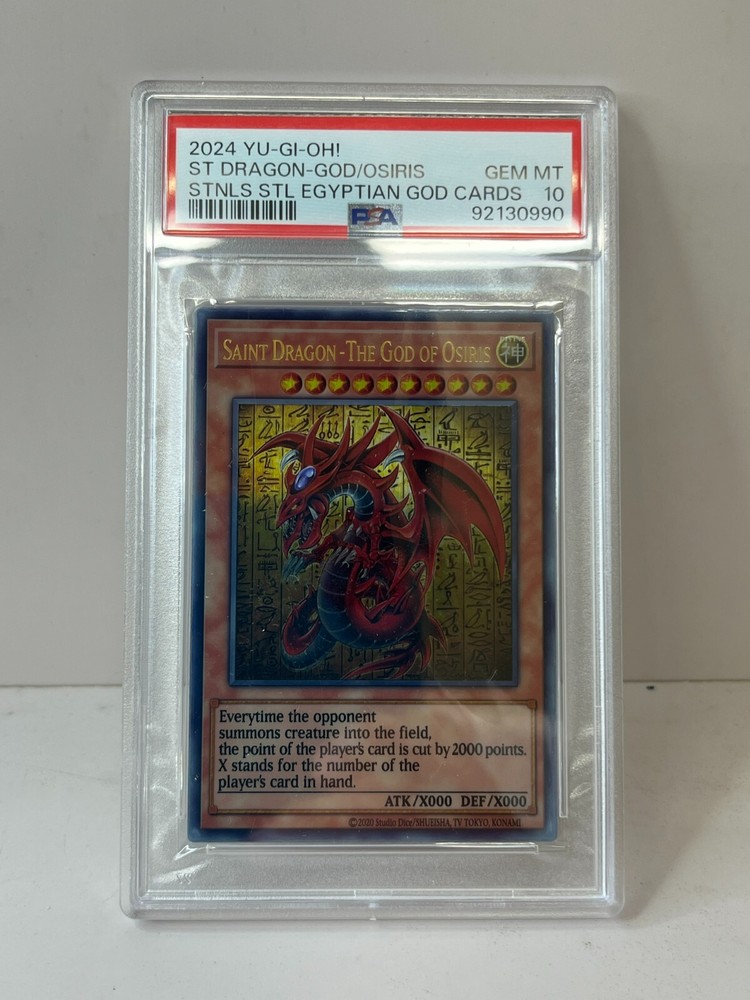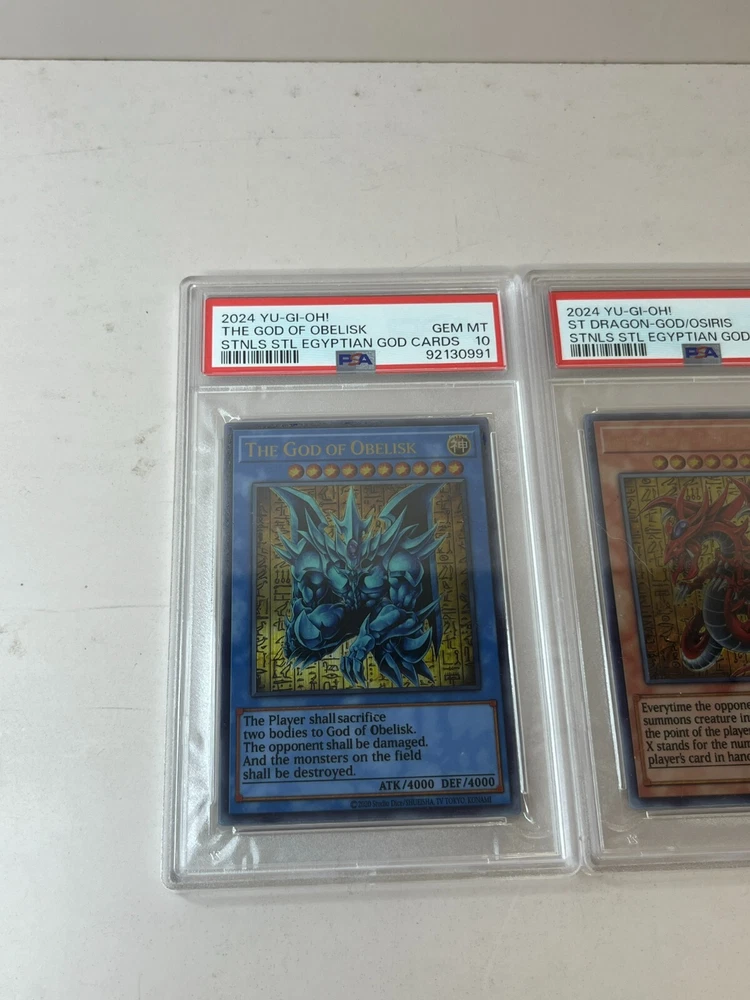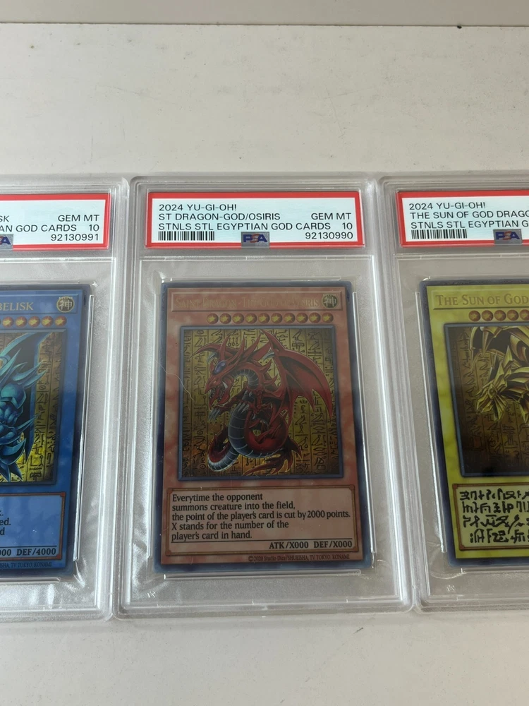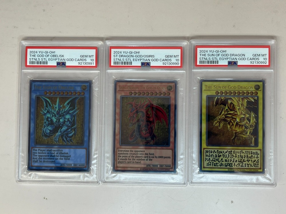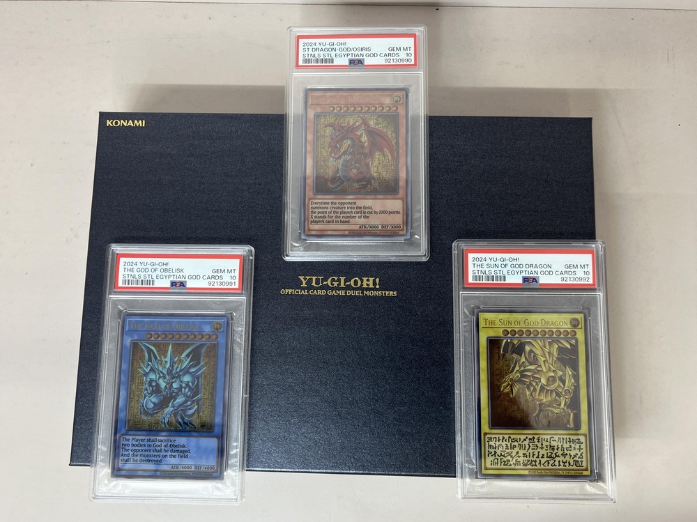 PSA10 Yu-Gi-Oh! TCG 25th Anniversary Egyptian God Cards with Stands Stainless Steel