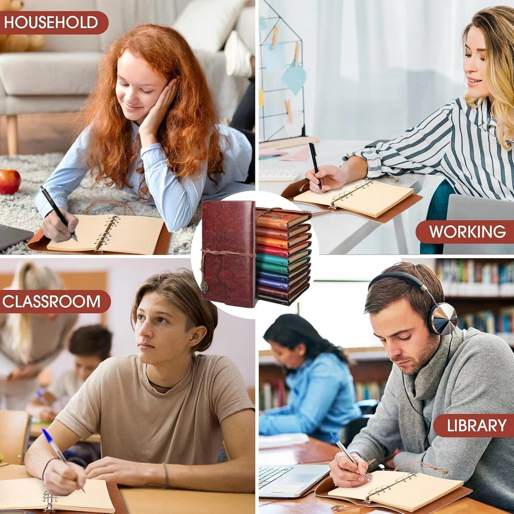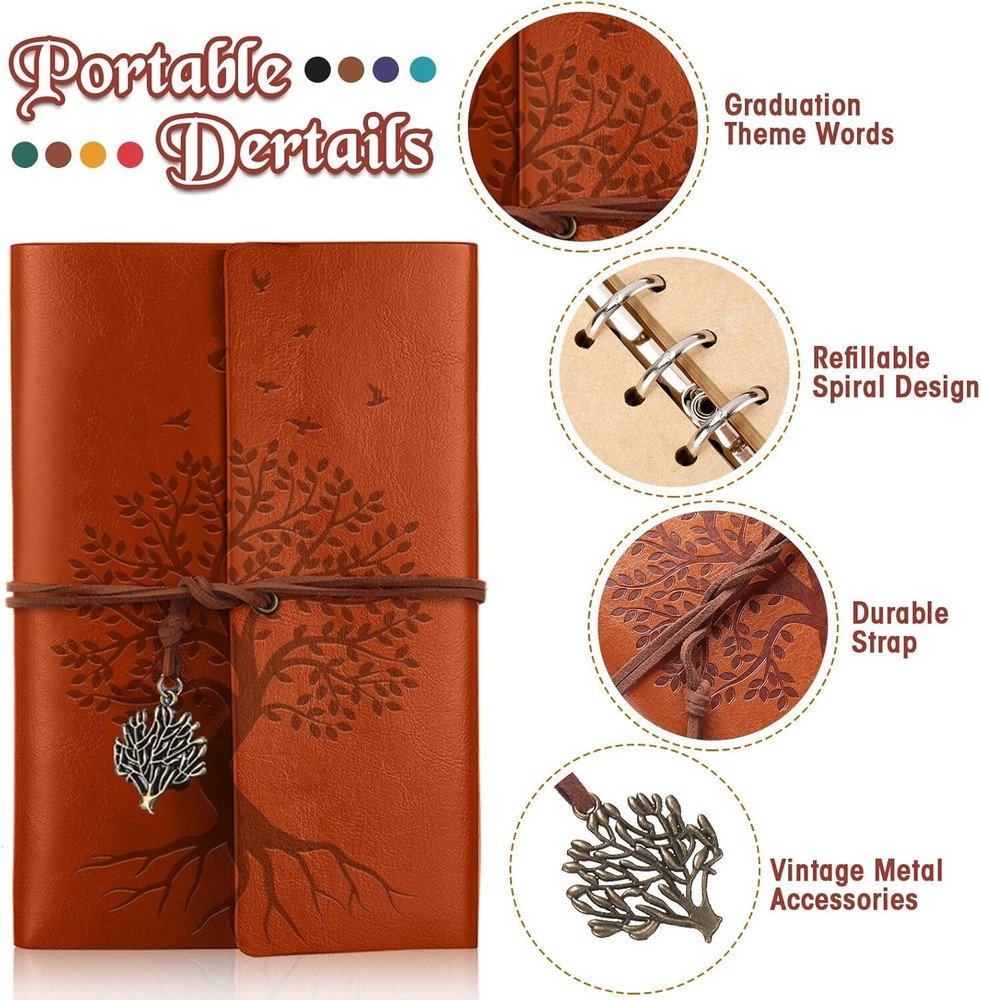 About this item Rich in Quantity: You will receive 10 pieces of PU leather bound notebooks in 10 different colors. Each cover is printed with a tree life design and matched with a tree pendant. The quantity and variety of colors are enough to meet your needs and replacements, and you can also share some with your friends and family members. Enjoy DIY Fun: The inner paper of the faux leather journal is plain and blank, allowing you to design various patterns, words, pictures, ideas, mind maps, and notes, to create your own distinctive style notebooks. Refill and Remove: The vintage journals feature a binding ring design, making it easy and convenient to remove unwanted pages and add pages you want, helping you record your memories and offering great flexibility. Reliable Material: The refillable leather journal notebook is mainly made of PU leather and paper, reliable and reusable, sturdy yet lightweight, smooth and safe, not easy to break or tear, ensuring long-lasting use. Wide Range of Applications: The refillable notebook is a practical and elegant tool in your daily life, suitable for use as a notebook, drawing board, sketchbook, travel notebook, diary planner, picture organizer, photo album, and more. Product dimensions: 10.63 x 8.78 x 4.53 inches On Jun 2, 2025 at 20:55:05 PDT, seller added the following information: