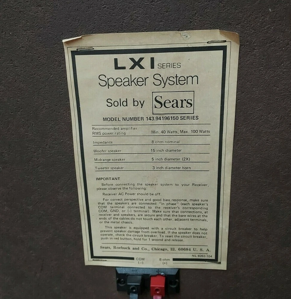 For sale is a super cool pair of vintage Fisher speakers. The branding is a bit confusing, these were sold at Sears stores back in the late 1970's/80's and they must have tagged them LXI instead of Fisher for whatever reason lol. But they were all Fisher drivers, although we did have to replace the tweeters as the originals were bad. I actually went with a same time period pair of tweeters with a bit higher wattage rating then the originals. We put fresh foam on the 15s, mids were all good. With the fresh foam and tweeters these speakers JAM hard and sound great, for real! I was quite surprised at the low end on these, cabinets and grills are all in great vintage condition with only some very very minor wear, no major damage. Very cool pair of old Fishers! Please let me know if you have any questions and thanks for looking!